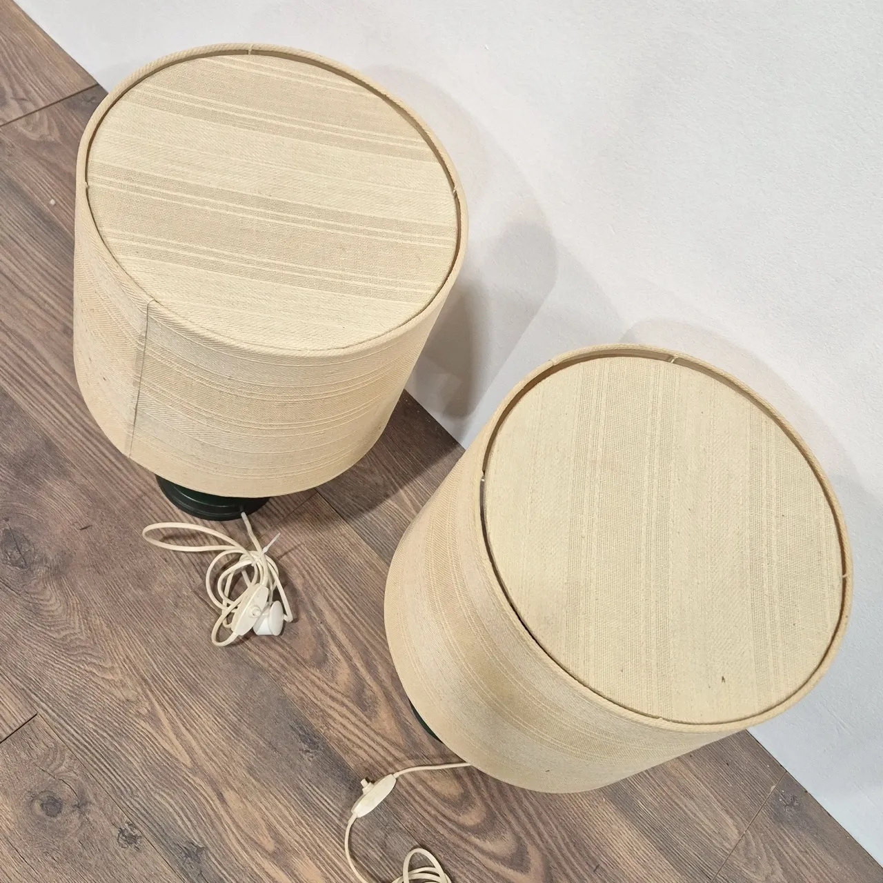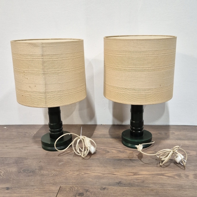 2st retro bordslampor. Ej testade/ojordad el . Skärmarna är hela men lite smutsiga . H.50cm