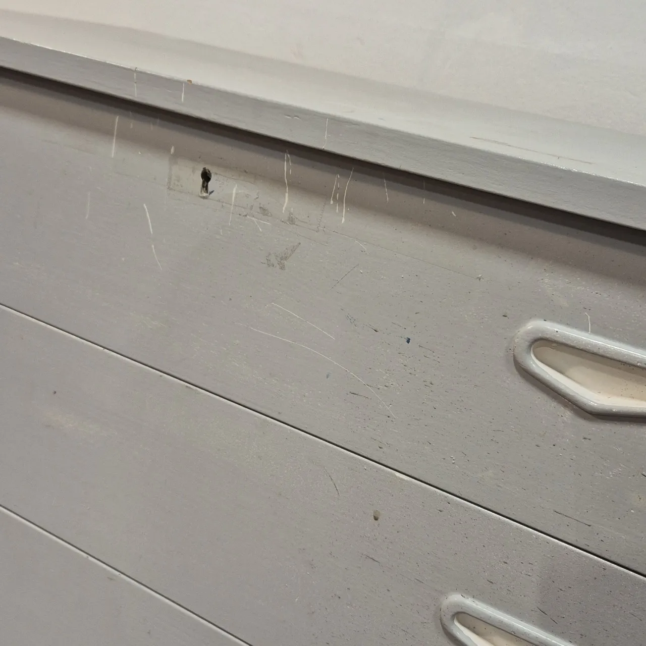 Retro ommålad byrå, fläckar, skrap. H.85cm 82x41cm