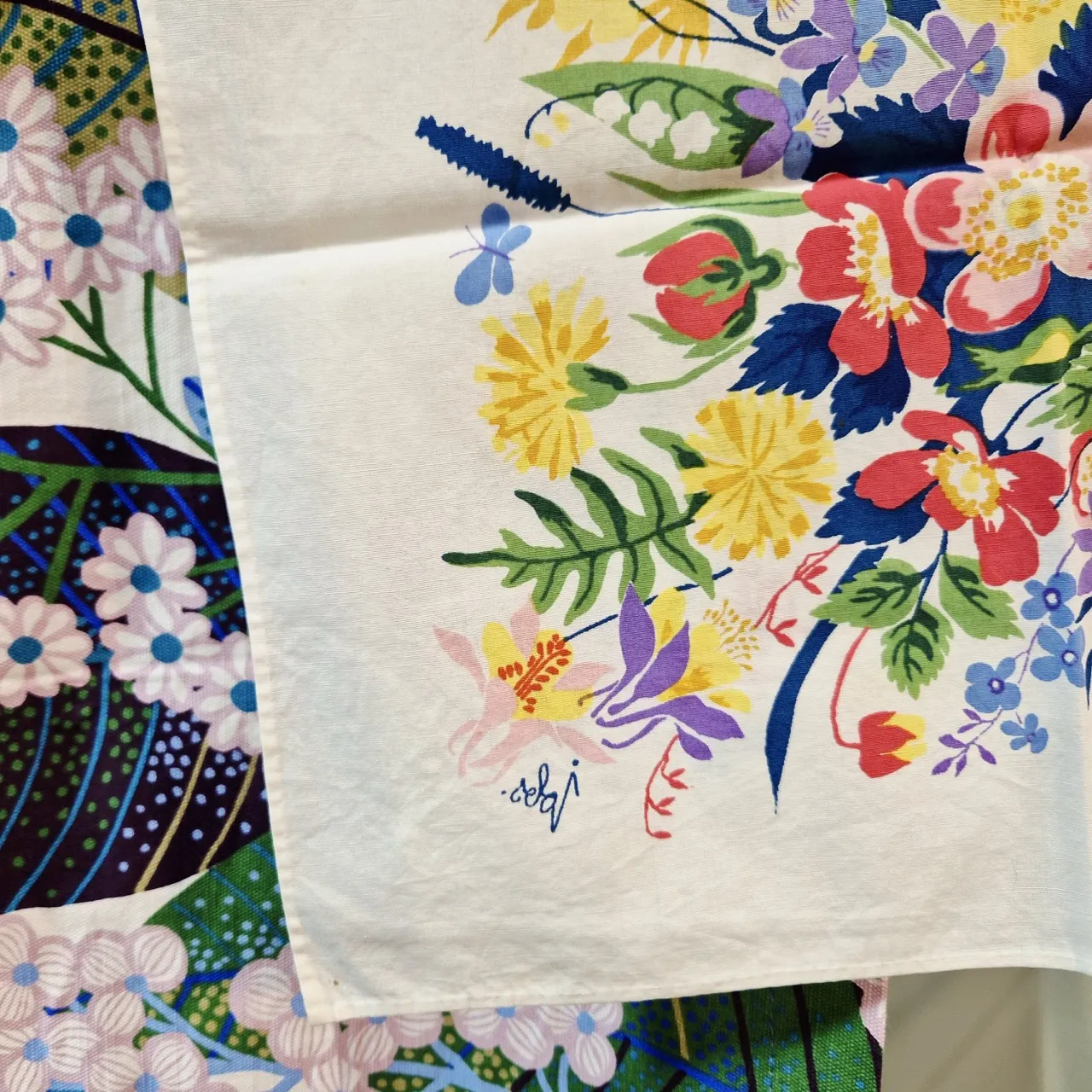 Blommig duk Jobs, fläckar finns 75x75cm