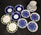 2st kaffekoppar med fat, tunna med blå blad dekor