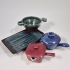 2st smörpannor ( den röda är rörstrand), skål -kopia av skål från Sala, liten ugnsform 13x22cm