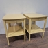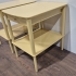 Retro sängbord. 2st pastellgula sängbord. Skavanker finns/sprucken färg på underskivorna. H.55cm, 52x40cm