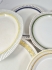 En samling olika retro tallrikar och uppläggningsfat. Pigg, Kryss, Neptun, Löv, Smide, Mexico, Klöver.