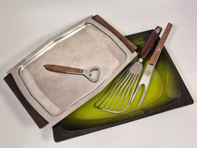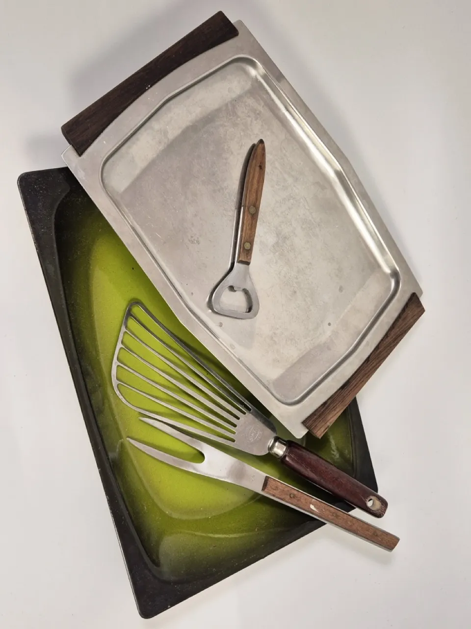 Retro ugnsform 33.5x23.5cm , stekspade , uppläggningsfat , kapsylöppnare