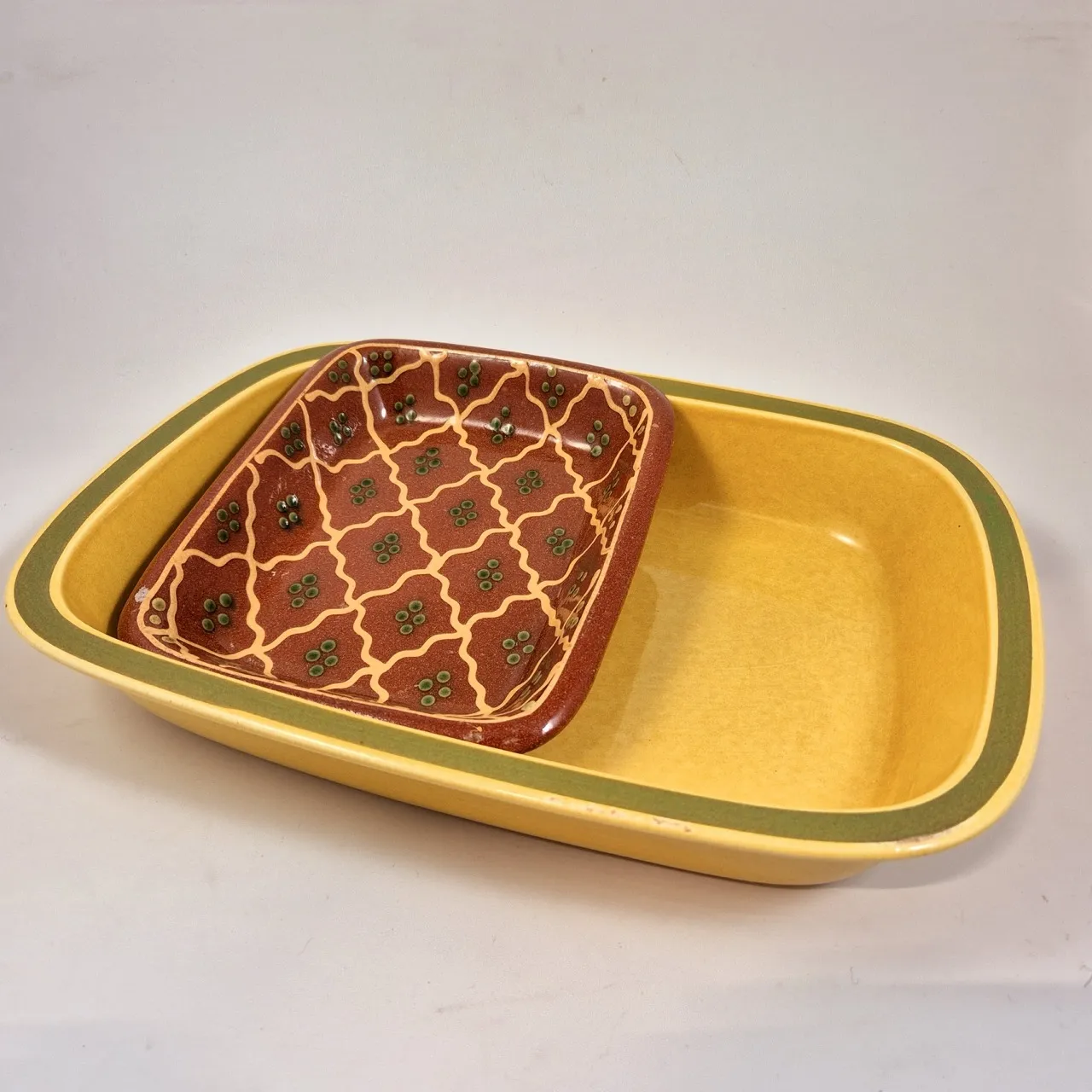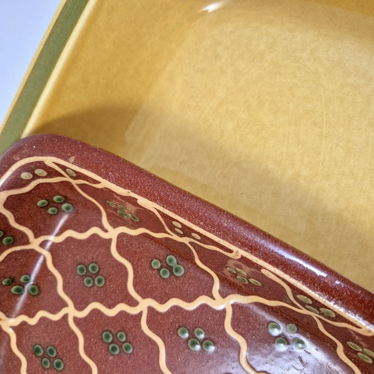 Gul med grön rand, 37x27cm