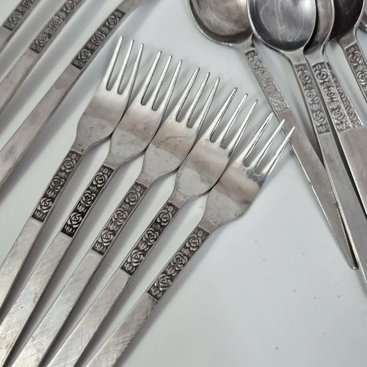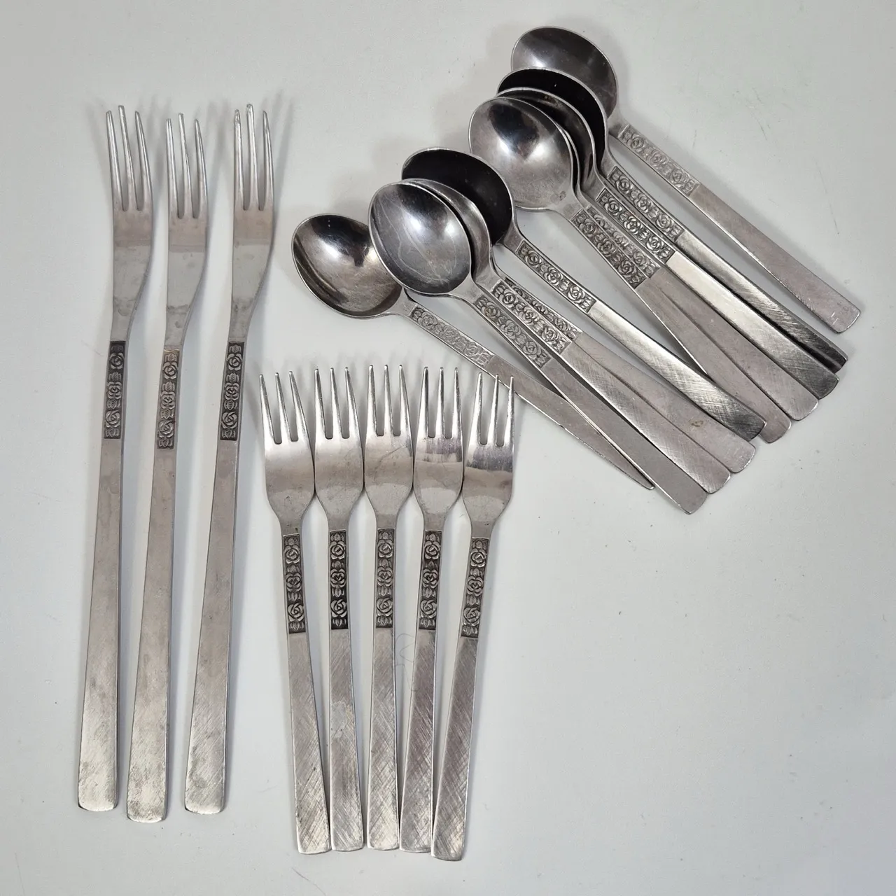Rosen plockgafflar långa 3st, korta 5st, teskedar 12st