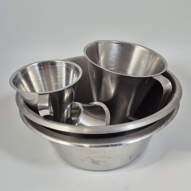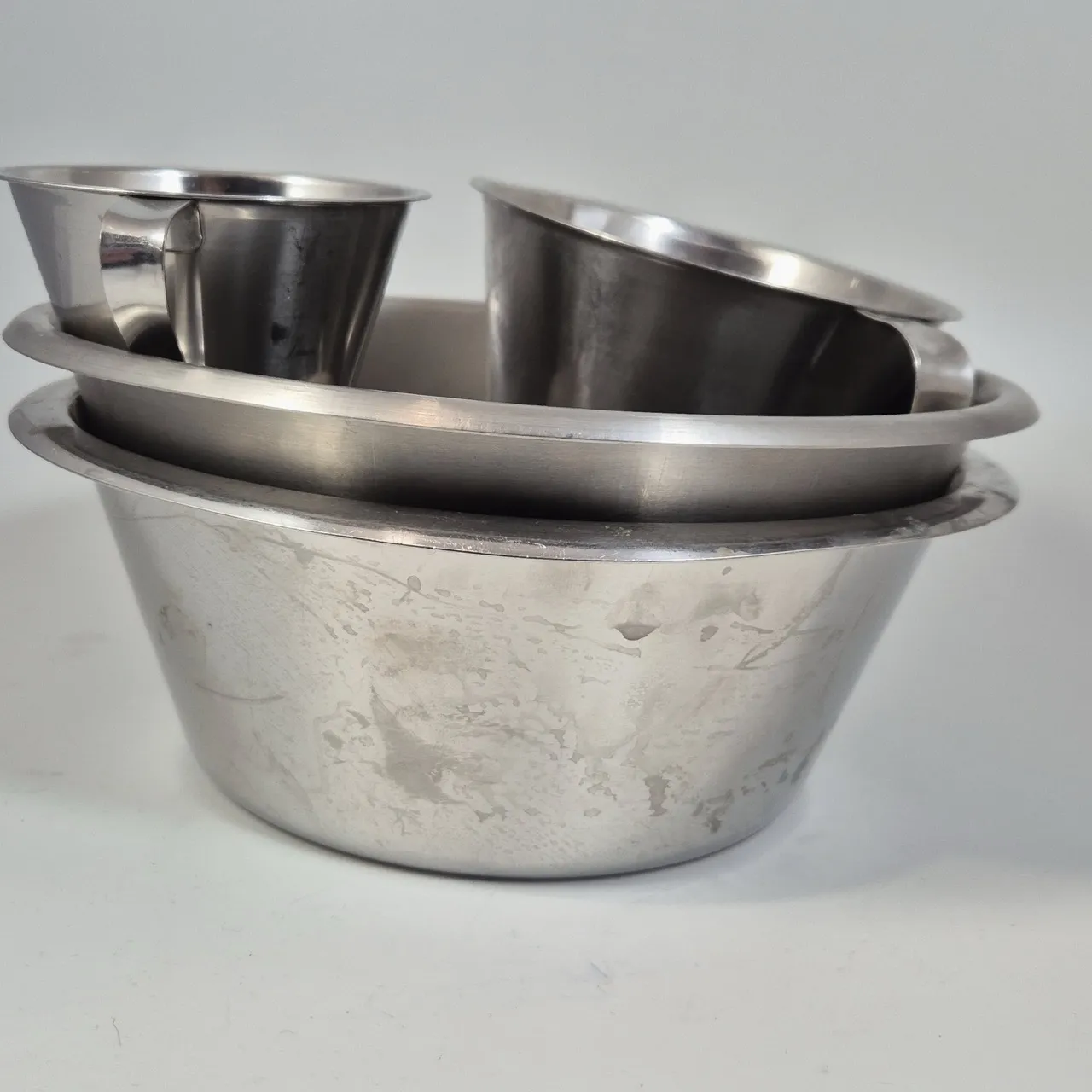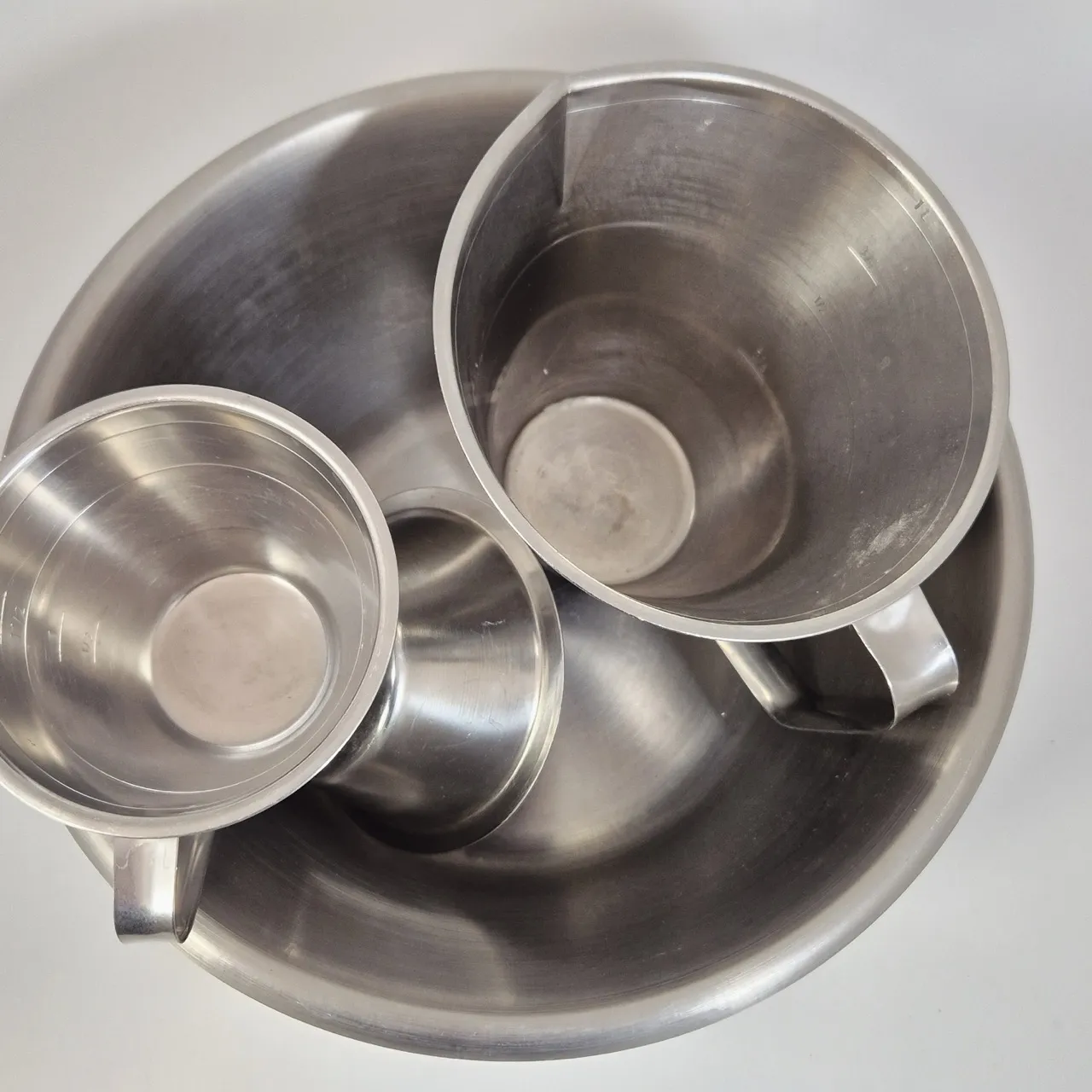 2st rostfria bukar, D. 25cm . 2st decilitermått