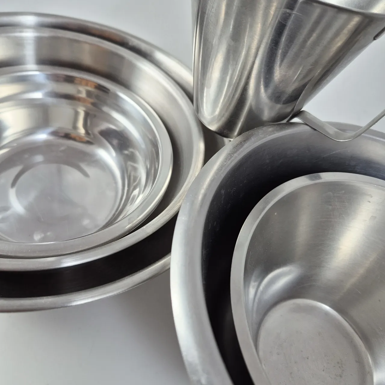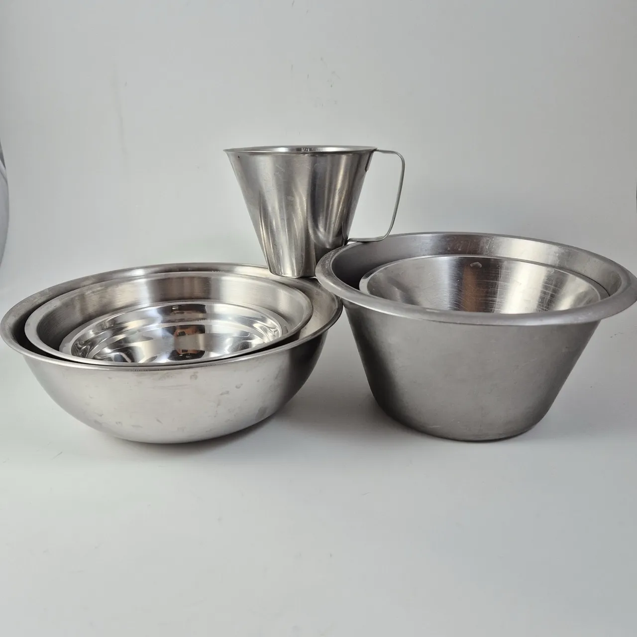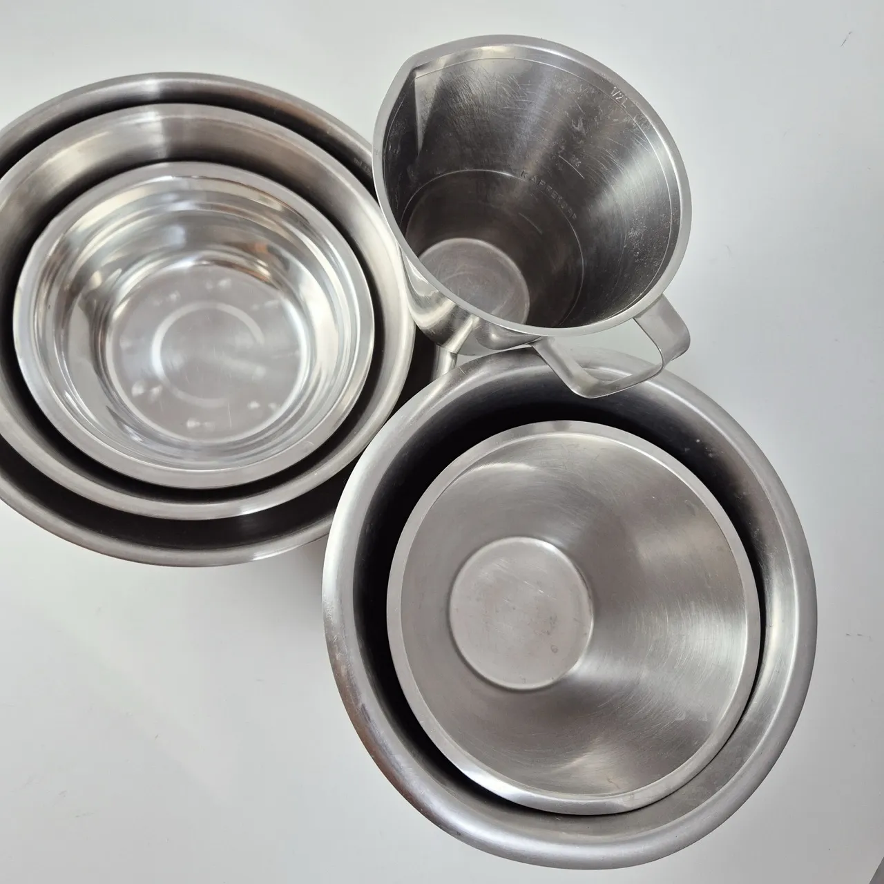 Rostfria bunkar Största är 2liter , 0.5liter mått.