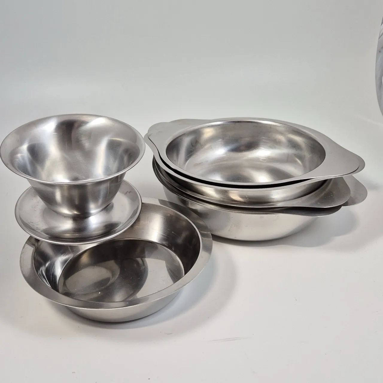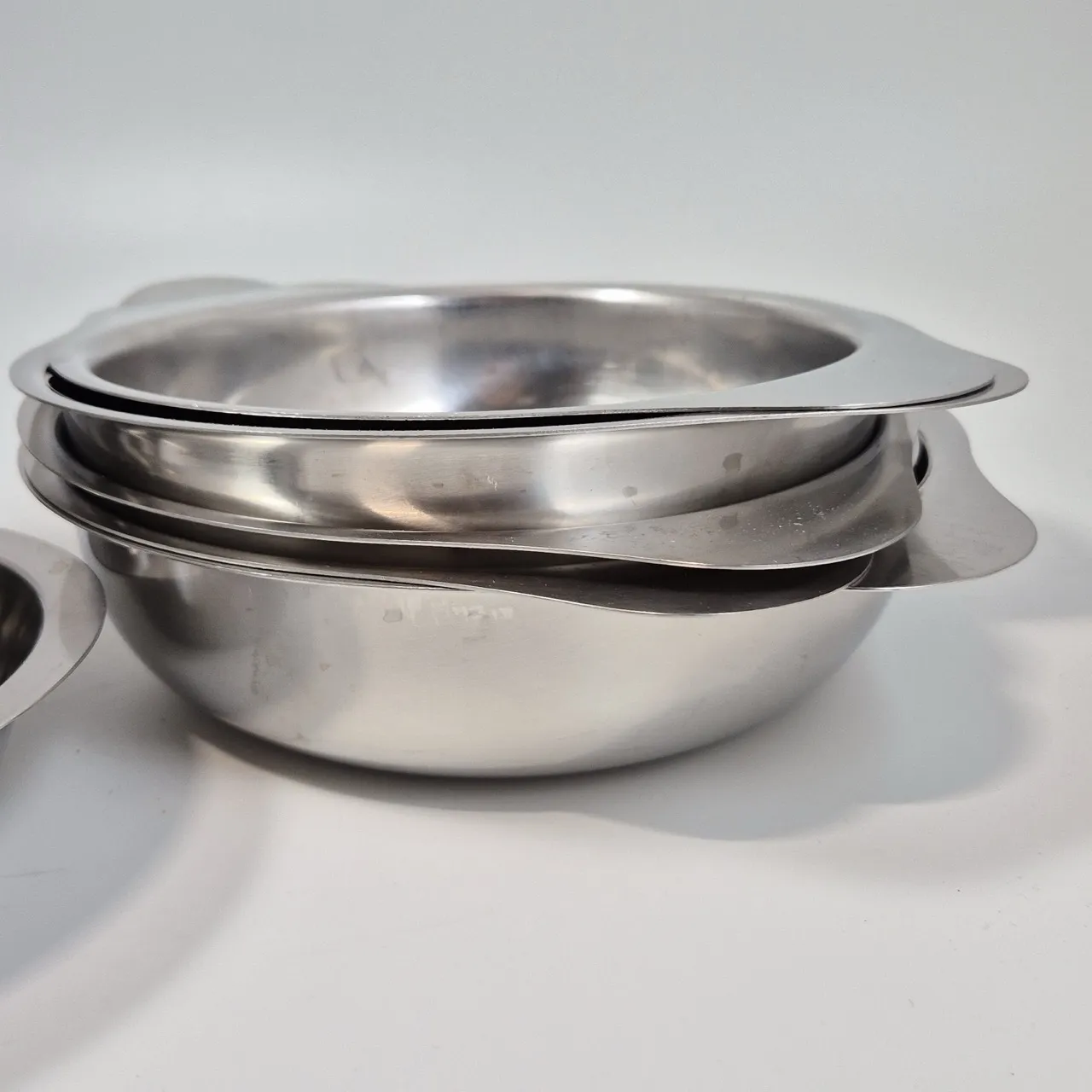 Rostfria skålar med handtag Gense. 5st . Största D. ca 22,5