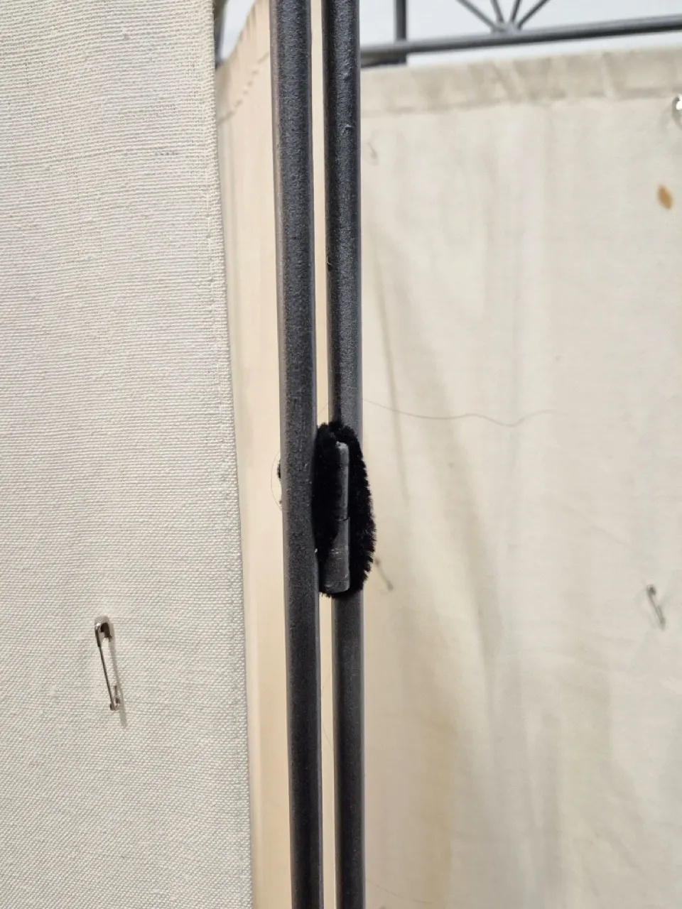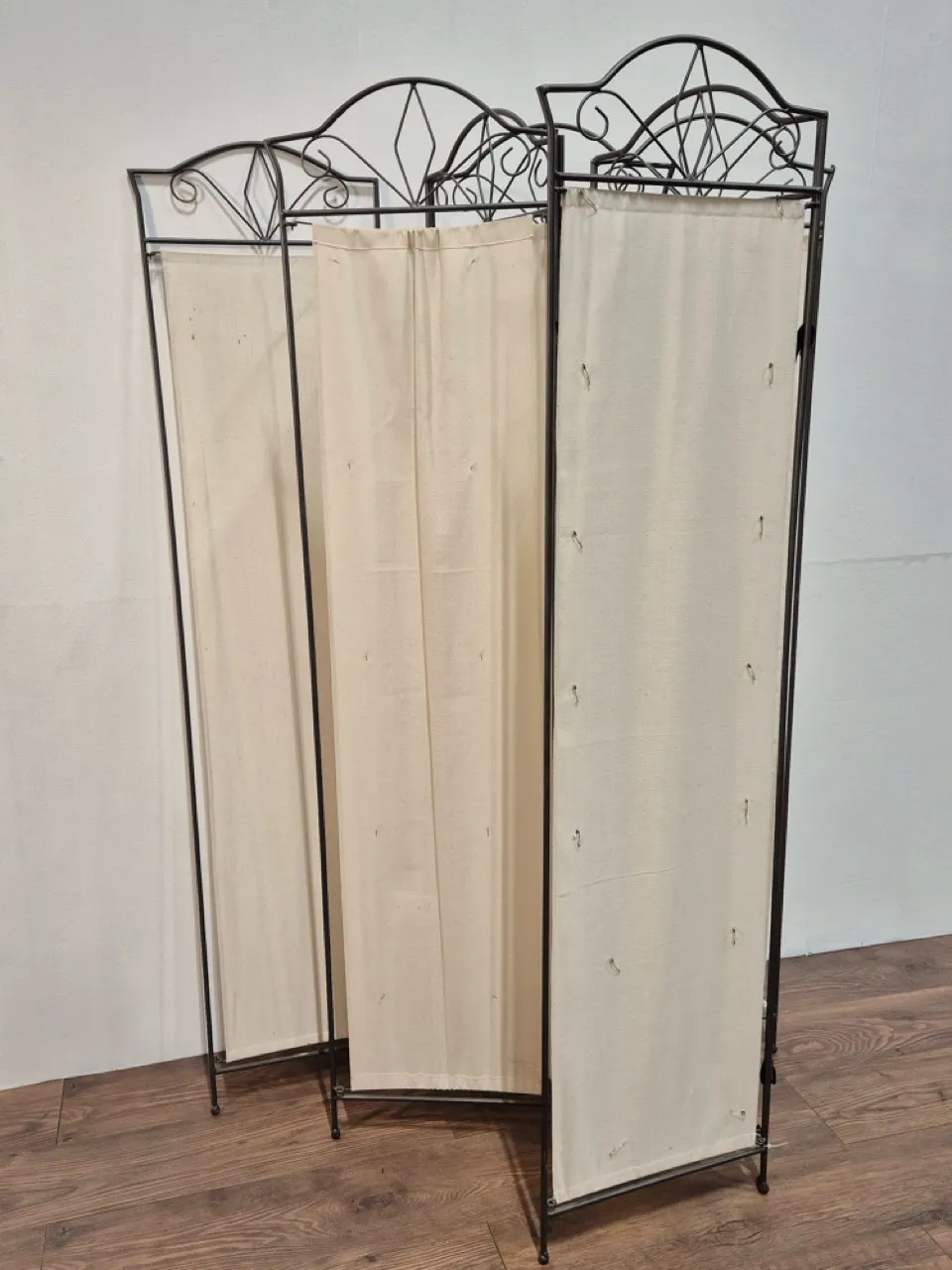 7st delar rums-skärmar. De sitter inte ihop eftersom de saknar sprintrar. Säkerhetsnålar och fläckar på tyget . H.167cm. B.40cm