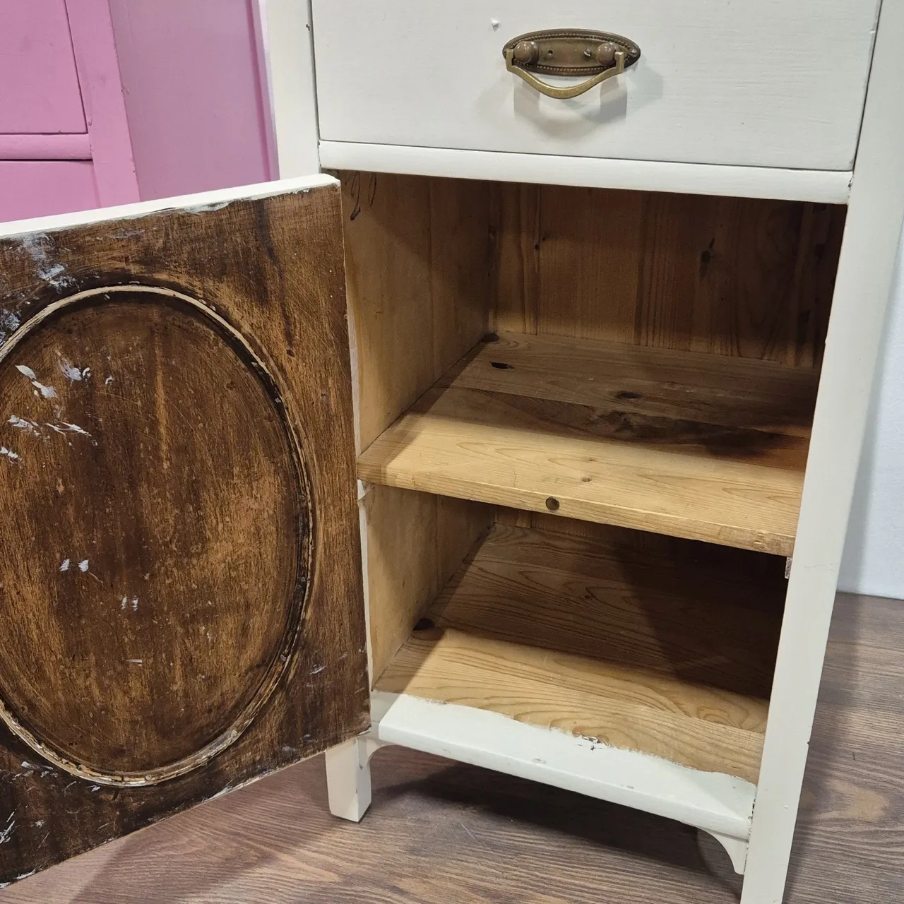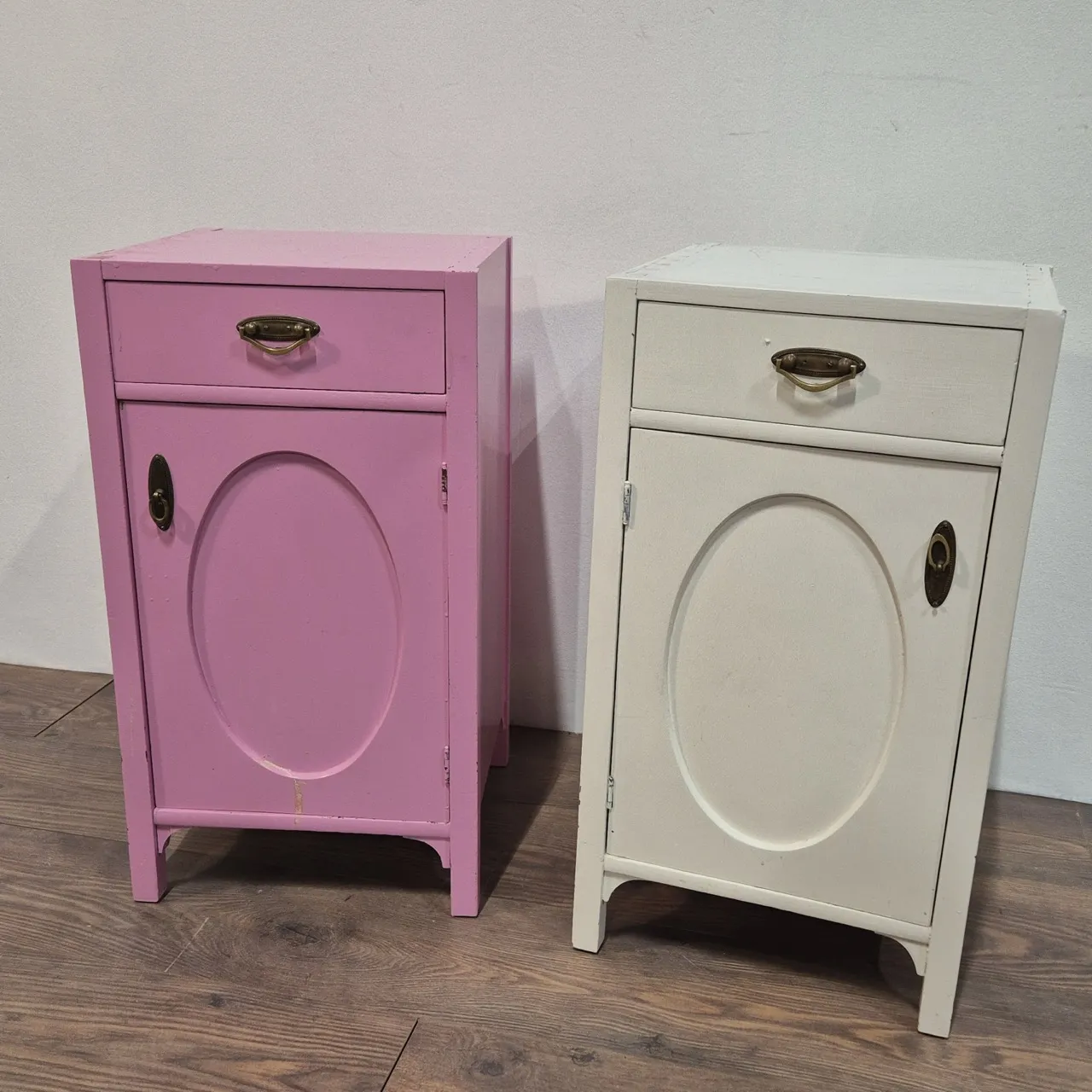 2st sängbord i olika färger, hemmamålade . H.65cm 35x35cm