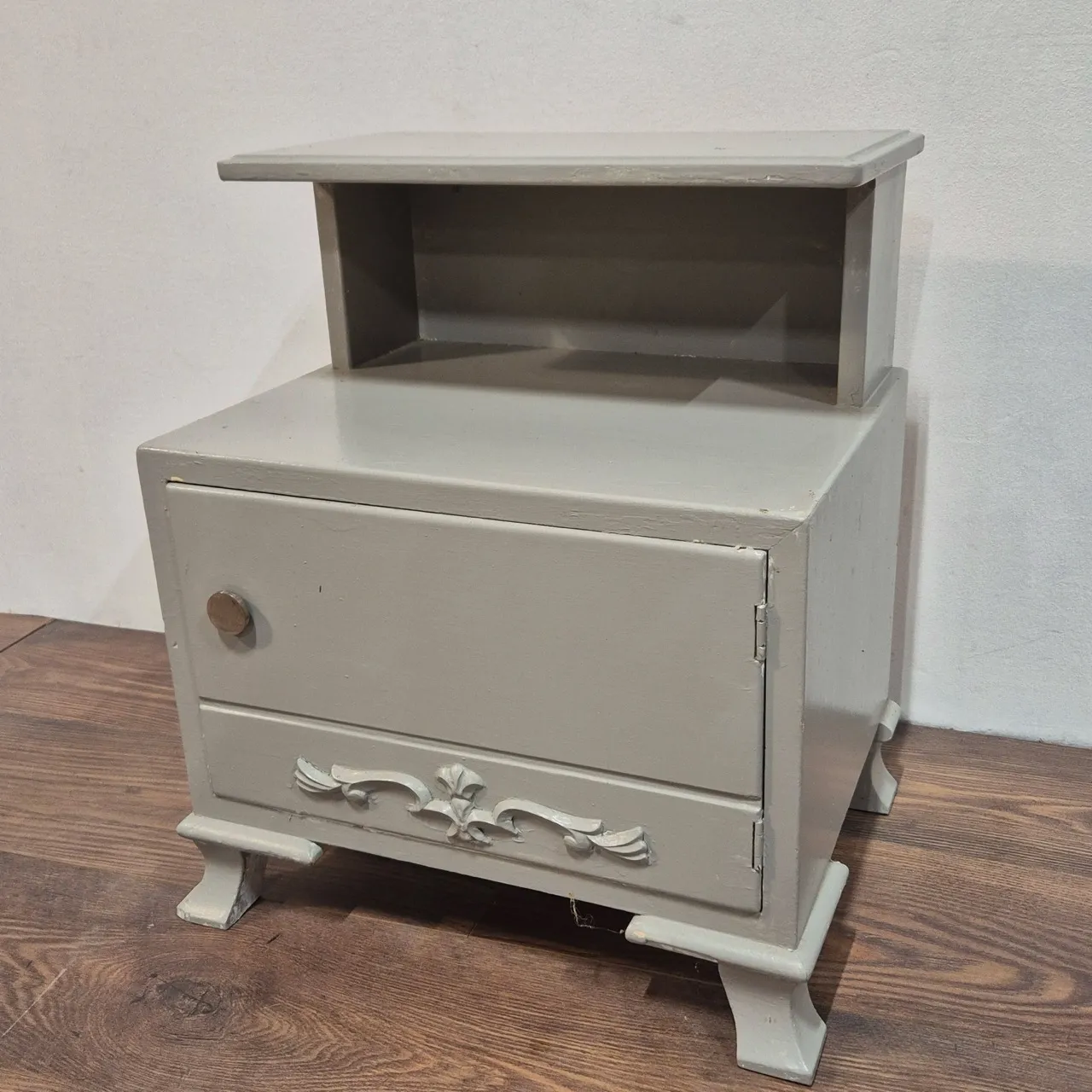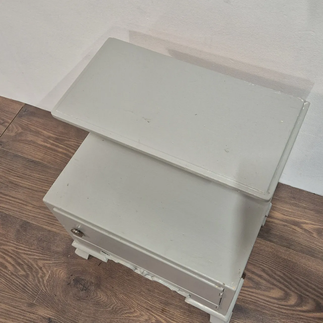Sängbord, ommålat. skrapmärken finns. H.52cm