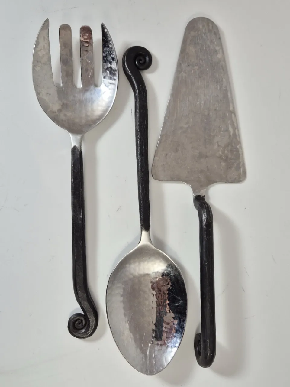 Salladsbestick och tårtspade i smide.