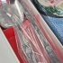 Salladsbestick med tulpaner . L.27cm . Helt nya i kartong