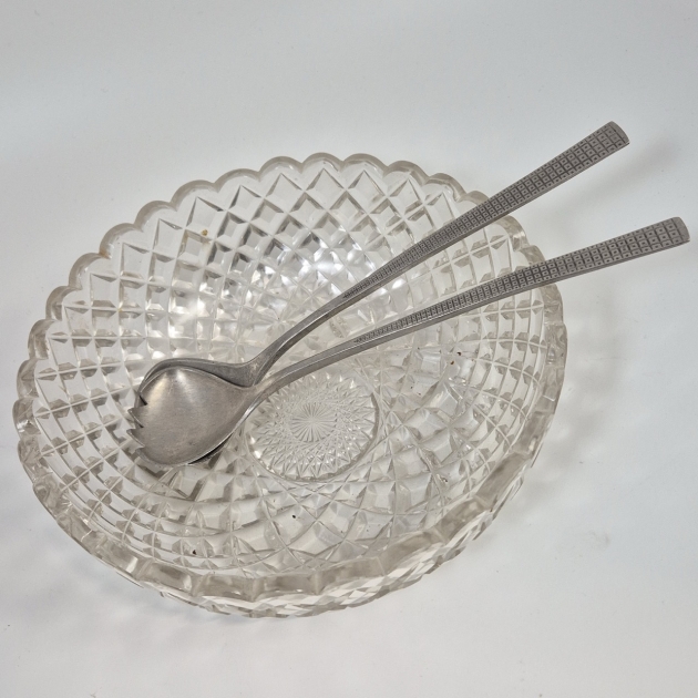 salladsbestick Norge, kristallig glitterskål d. 24cm