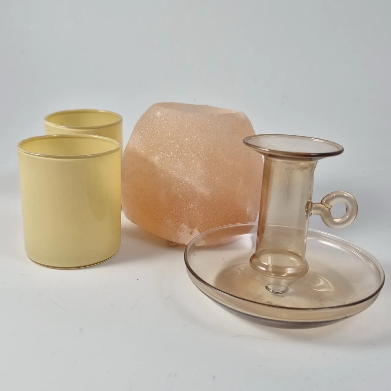Ljusstake glas, 2st ljuslyktor, 1st saltstenslykta