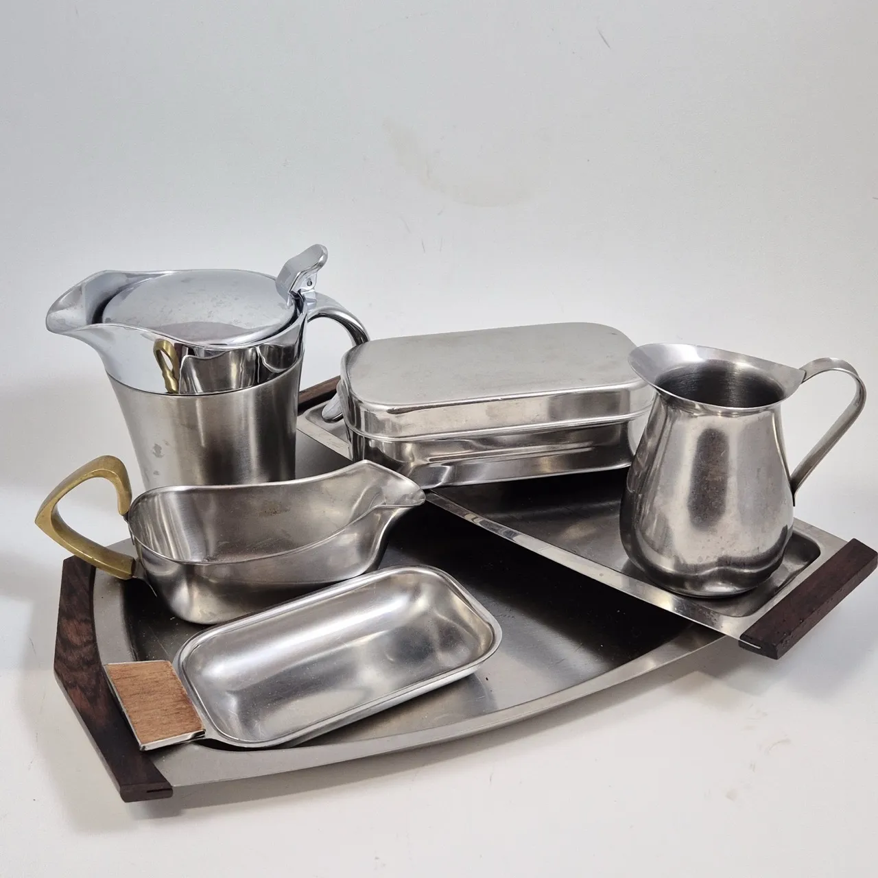 Serveringsfat med handtag i trä, 3 olika