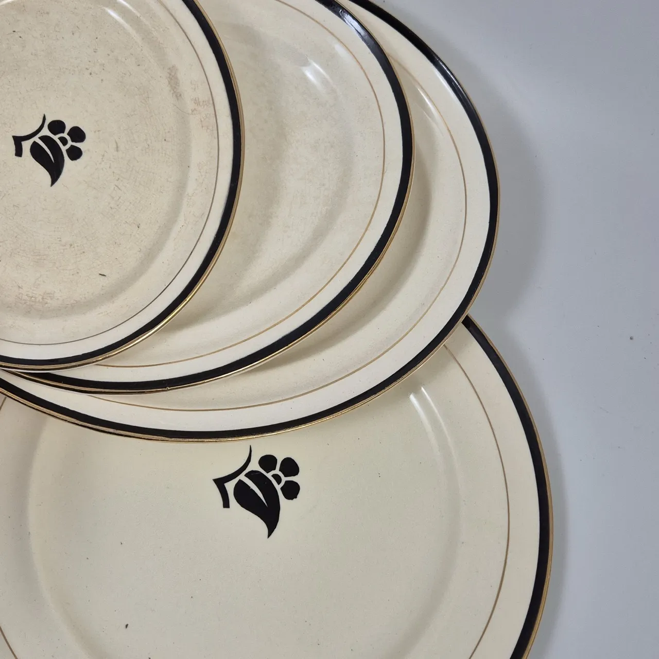 Tallrikarna har krackityr och missfärgningar. Det finns skav och krackityr på det andra också men fint för sin åler.