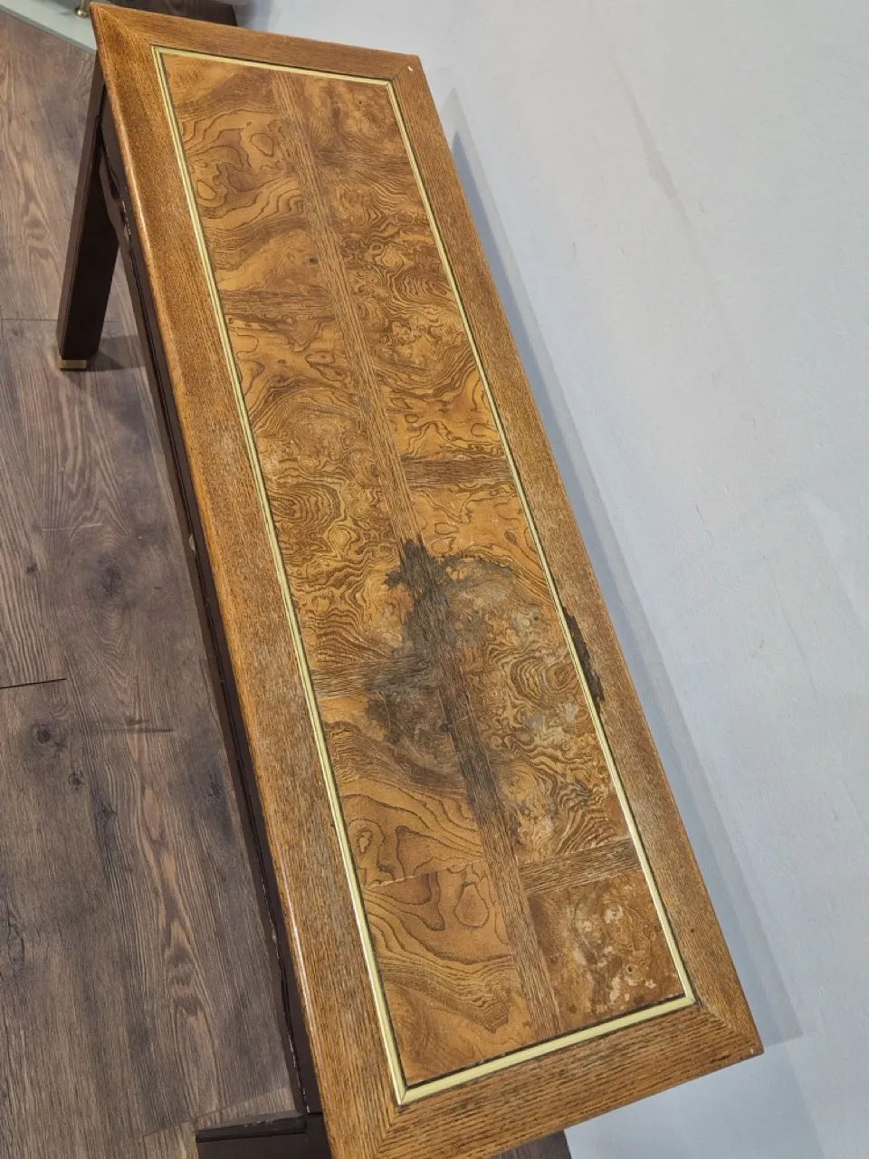 Sidebord, fuktfläckar, skrapmärken. H.66cm 134x44cm