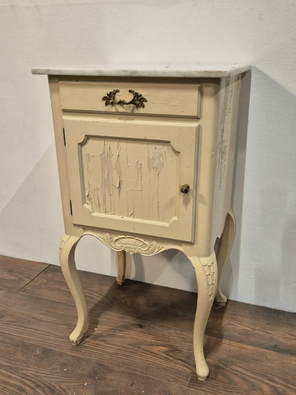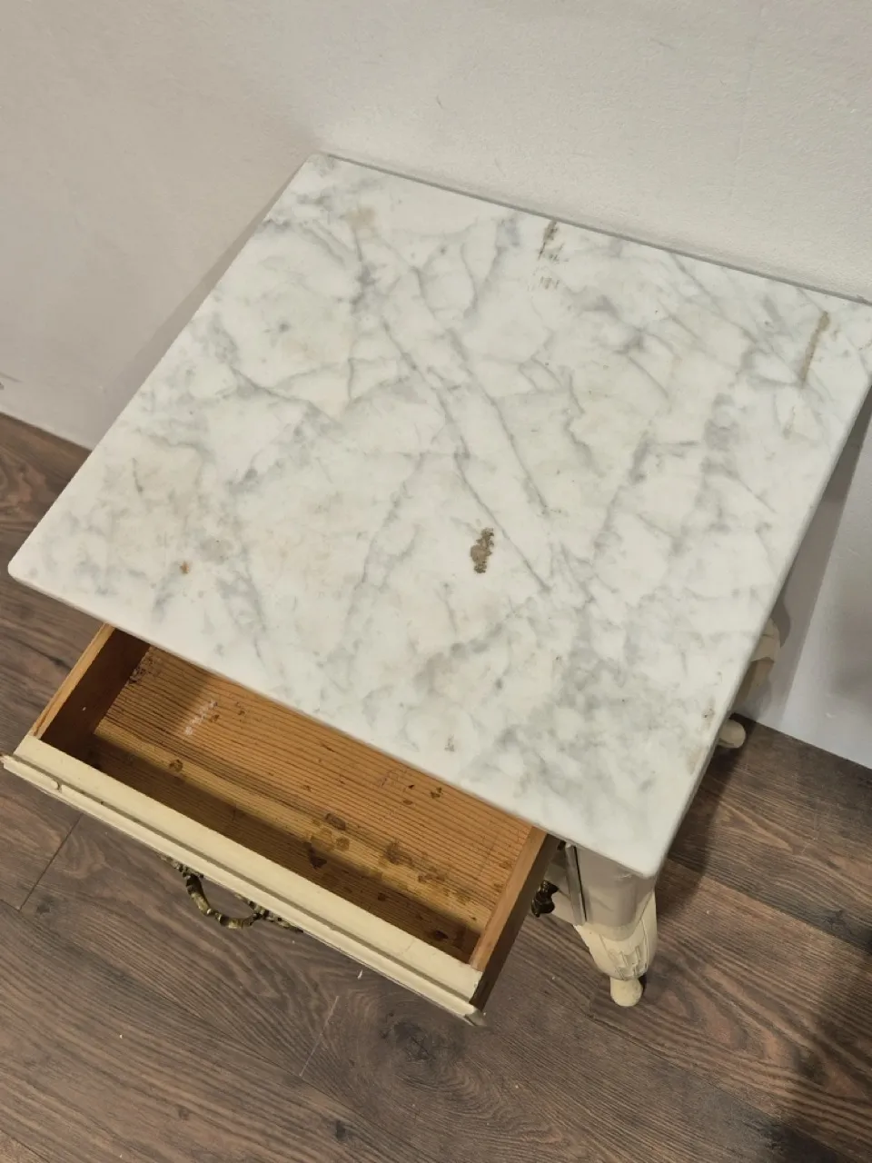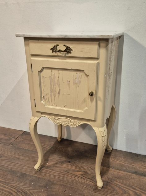 Sidebord med marmorskiva. Flagig och rar H.75cm 42x37cm
