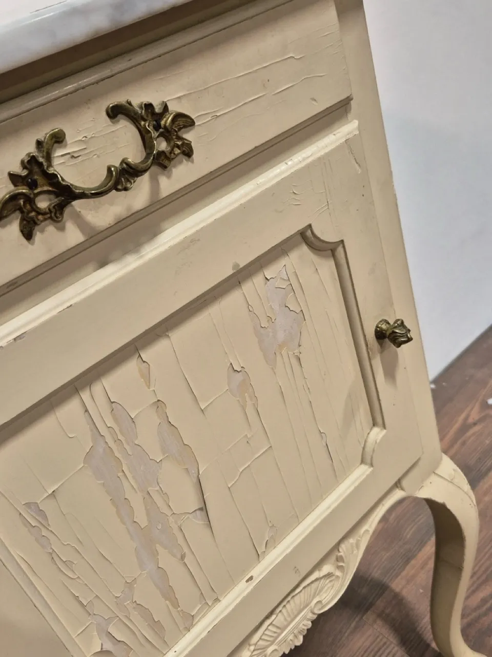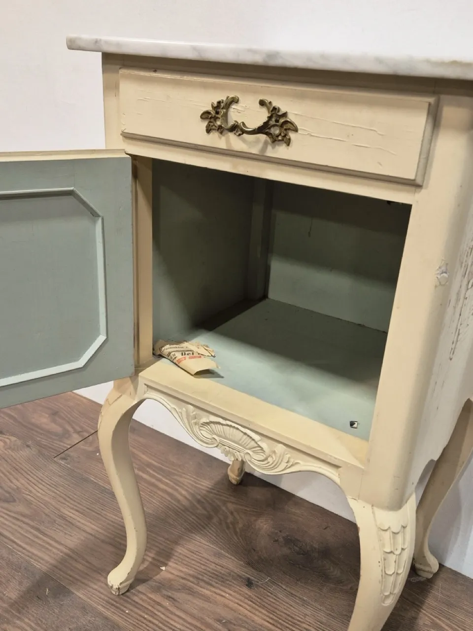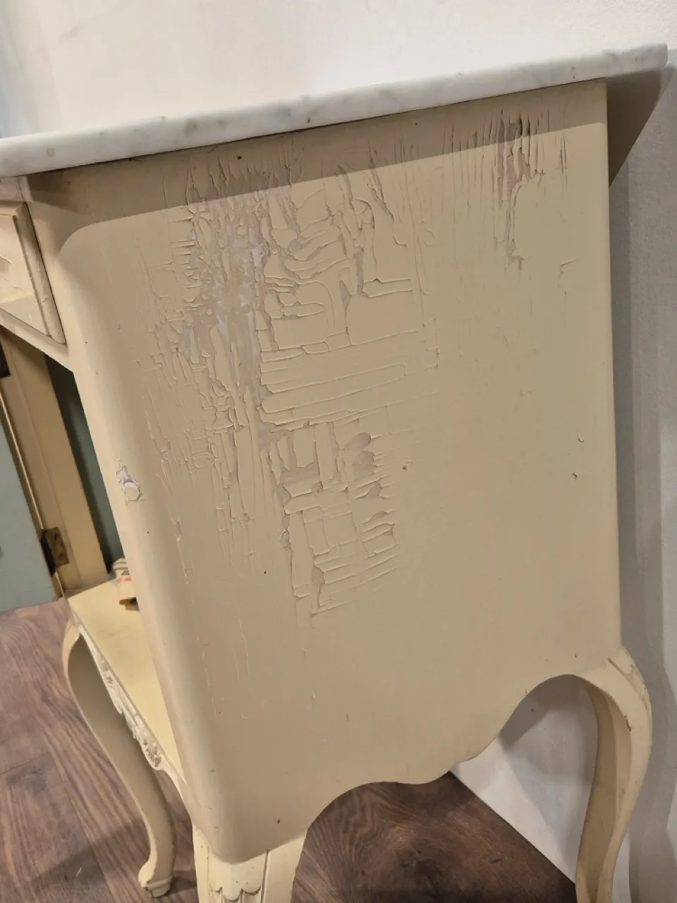 Sidebord med marmorskiva. Flagig och rar H.75cm 42x37cm