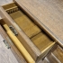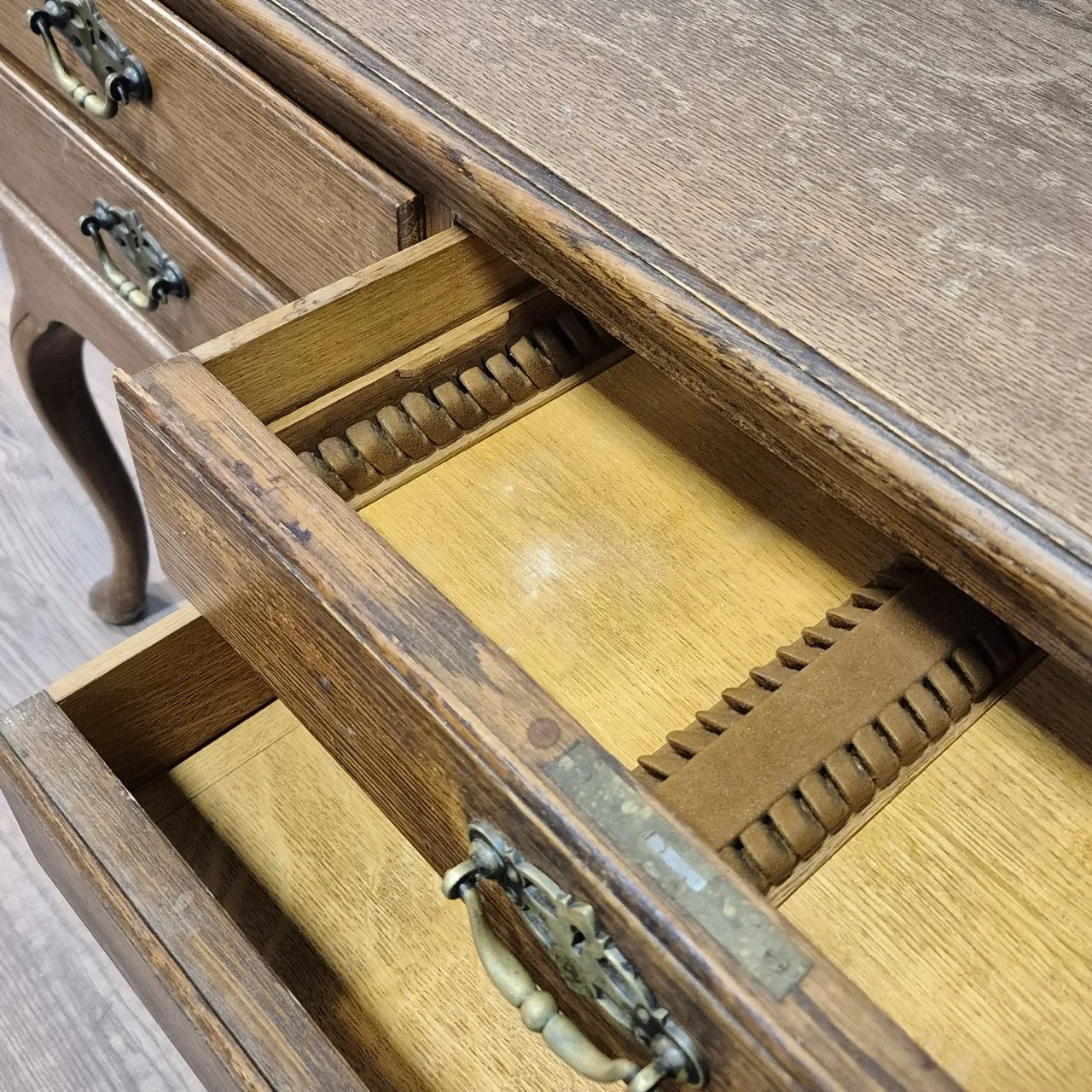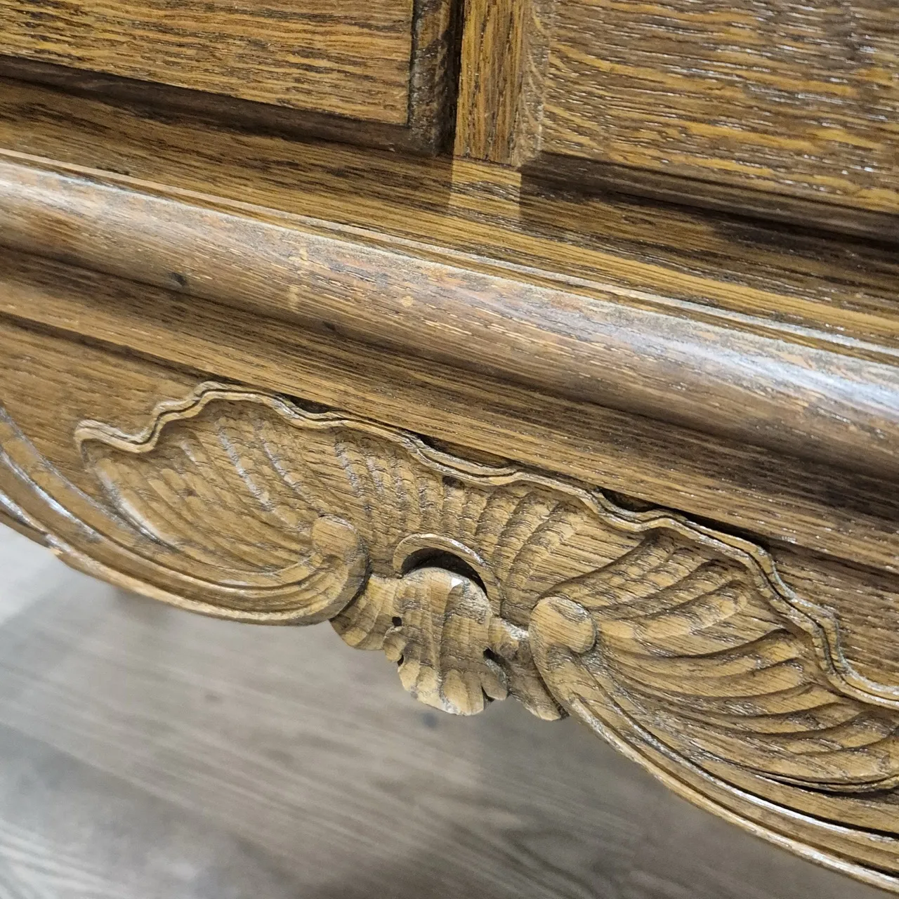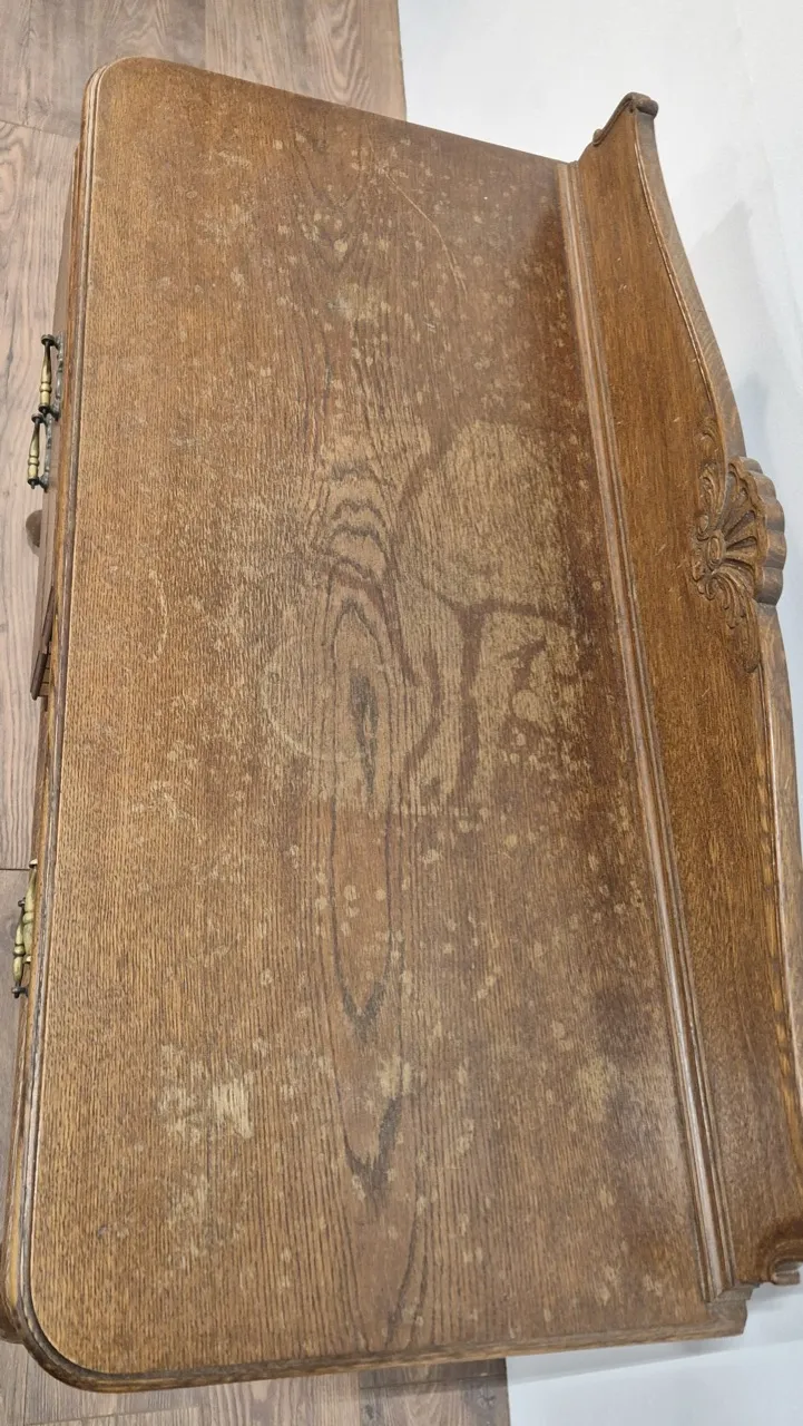 Skänk i ek. Smäcker, har fläckar/behöver oljas på skivan. B.110cm. D.50cm . Totahöjd ca 103cm