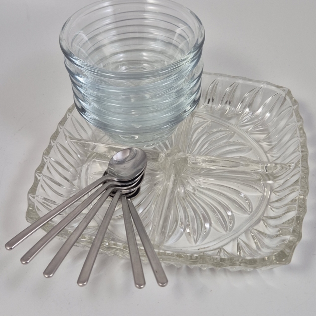 5st skålar D.11.5cm , 6skedar, serveringsfat/tapas