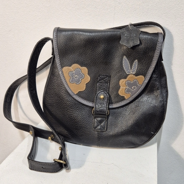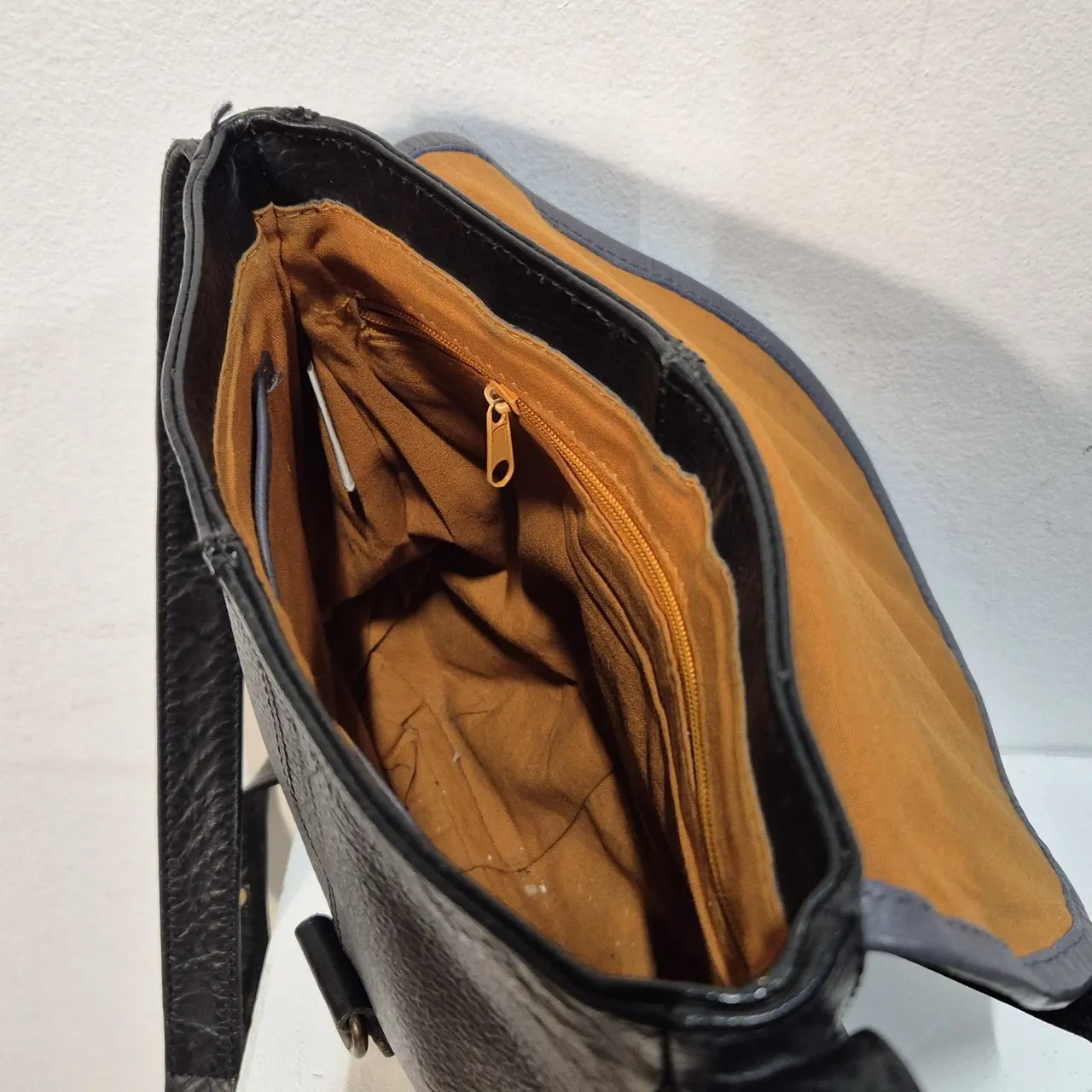 Väska Gudrun Sjödén i skinn 25x25cm. Axelrem. Fint skick men slitet i ett hål på remmen.