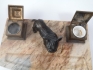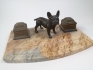 Skrivställ i sten med franskbulldog som dekoration
