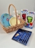 2st sluchymaker, 7st rostfria sugrör, Mepal 4st assietter, 6st blommiga plasttallrikar, korg.