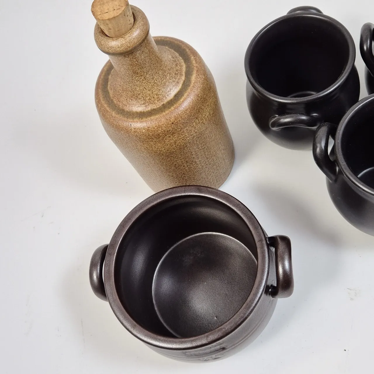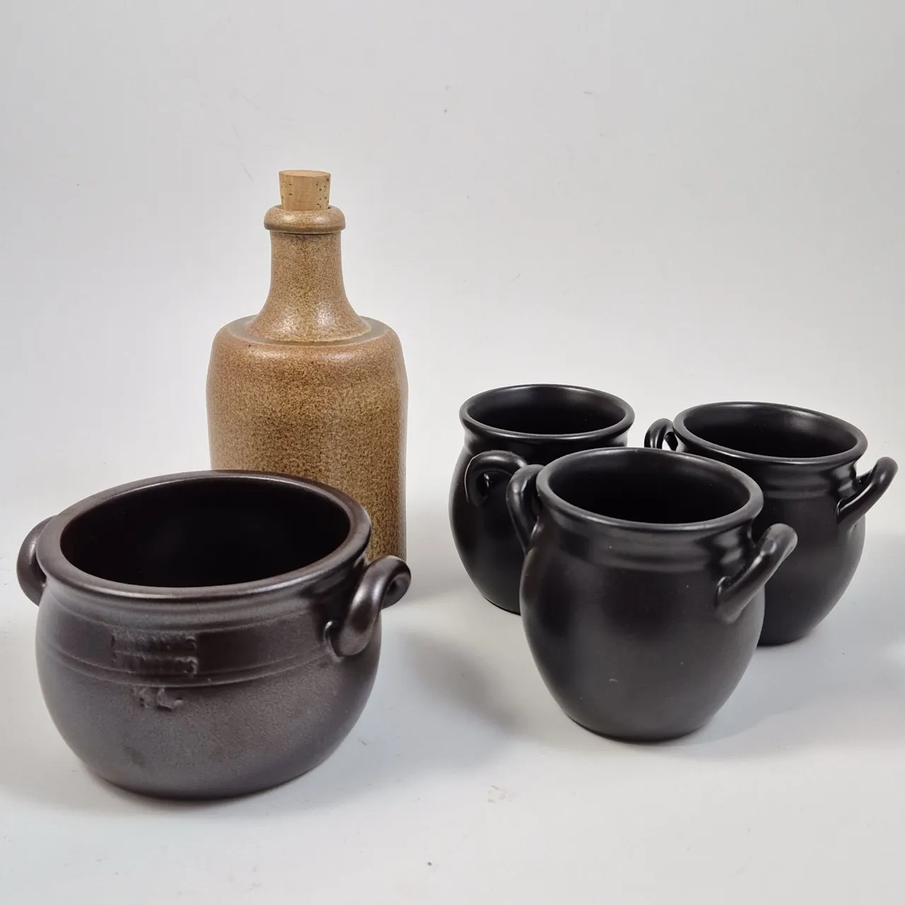 3st krukor, 1st höganäs kruka 0.5liter , stengods flaska med kork H.19