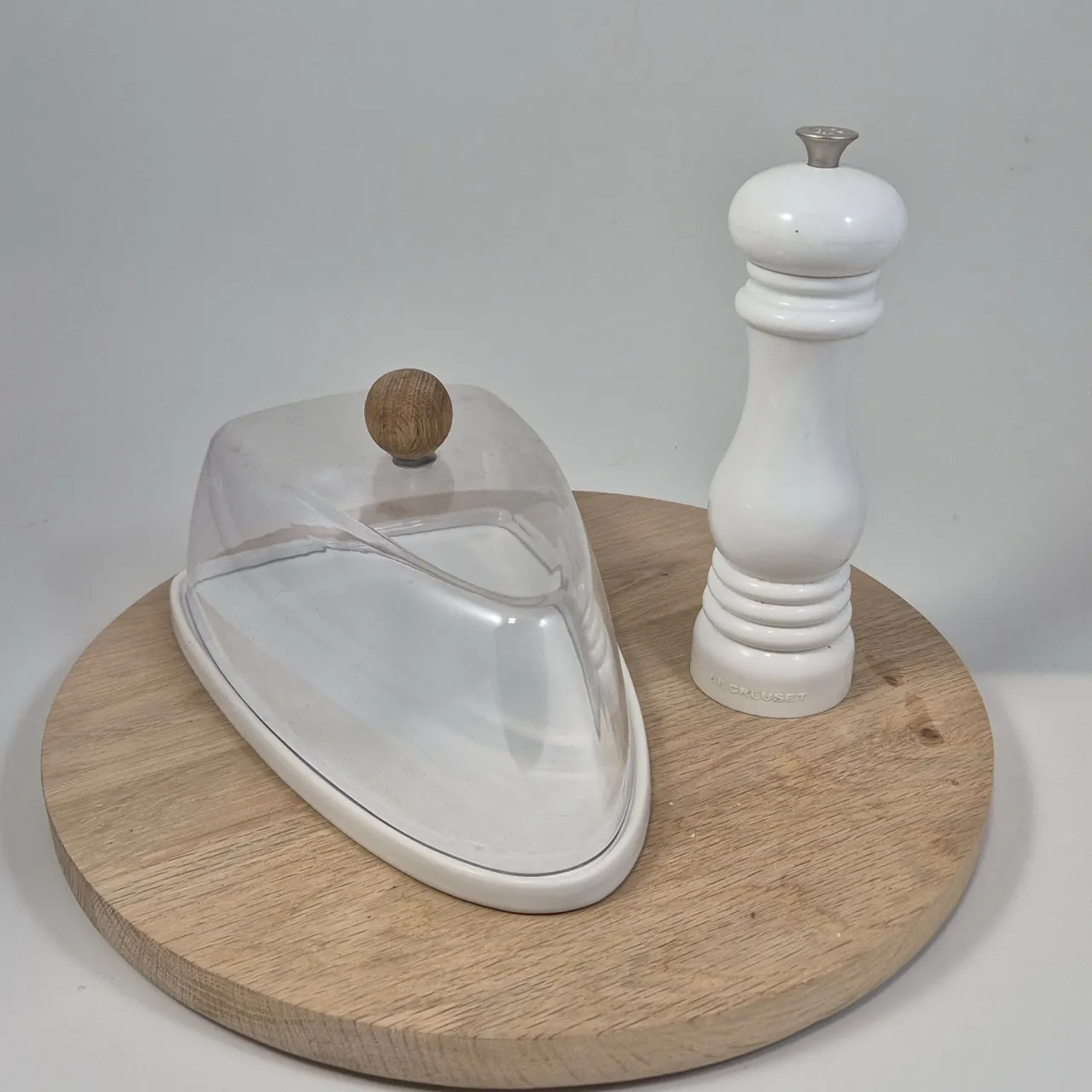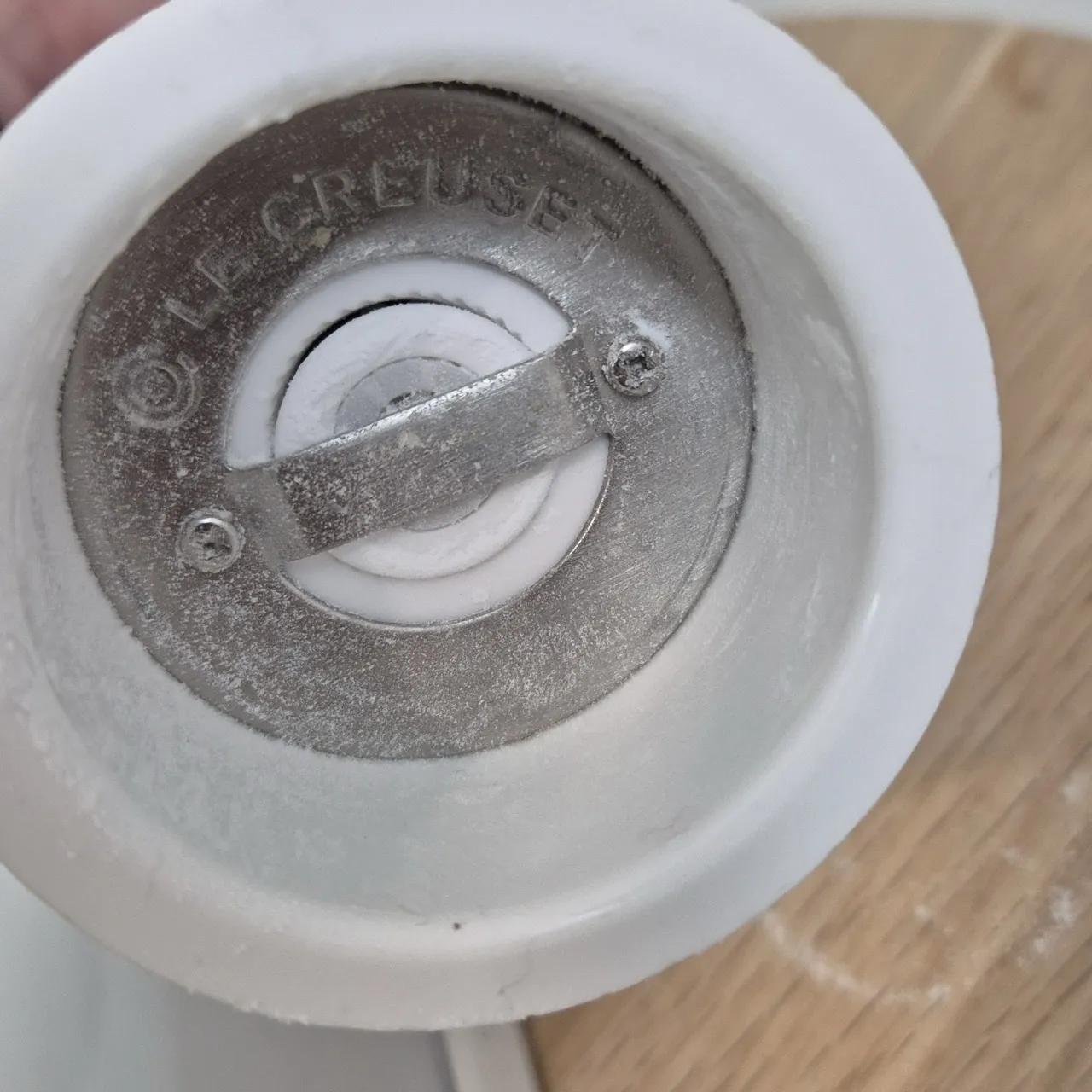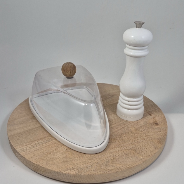 Snurrbricka, ostkupa i plast med porslinsbotten, Saltkvarn Le creuset H.21cm