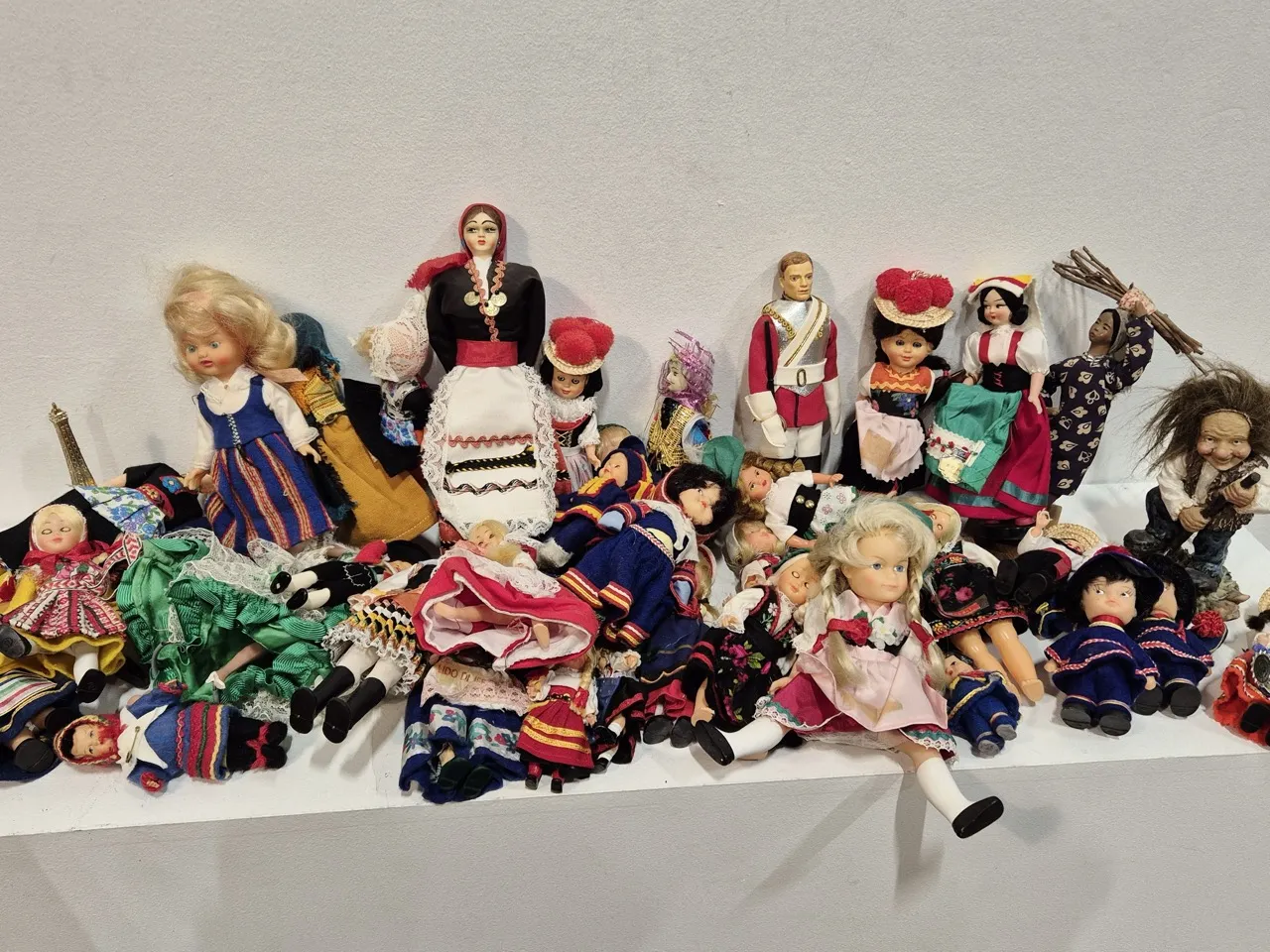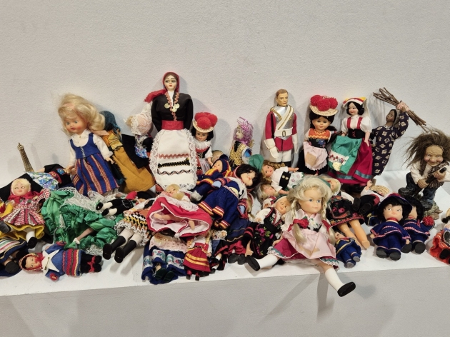 Små souvenirdockor . Varierande skick, vissa har skador/tras.