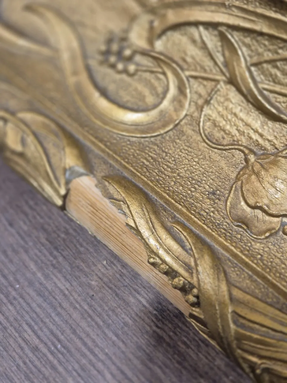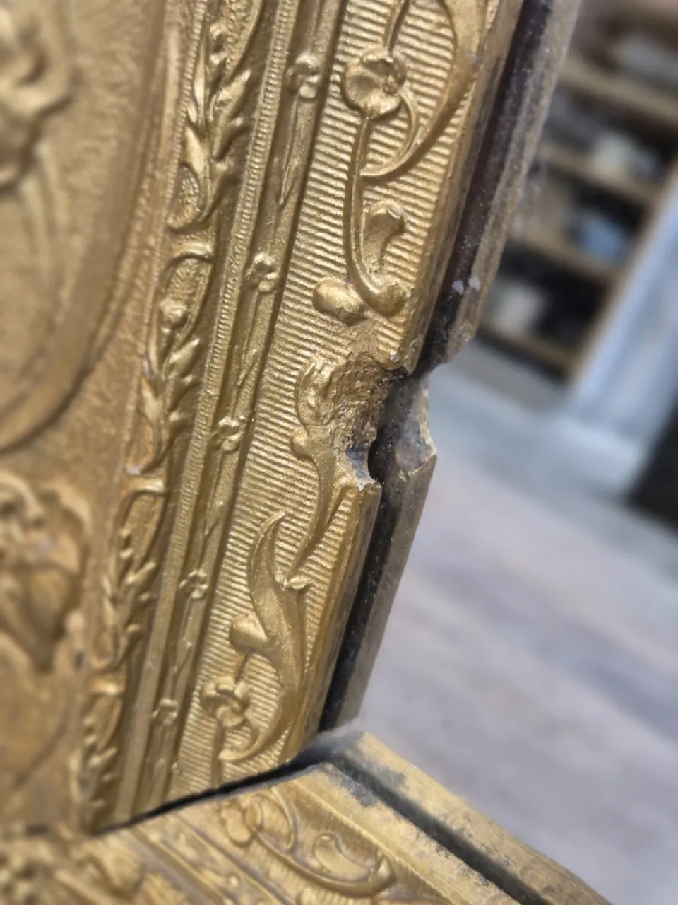 Maffig spegel med guldig ram. Några släpp på ramen. 101x81cm