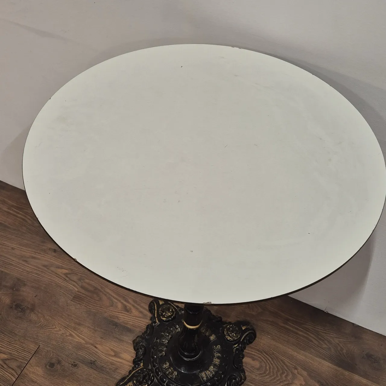 Ståbord med fot av gjutjärn från Harrys . H. 109cm D.70cm