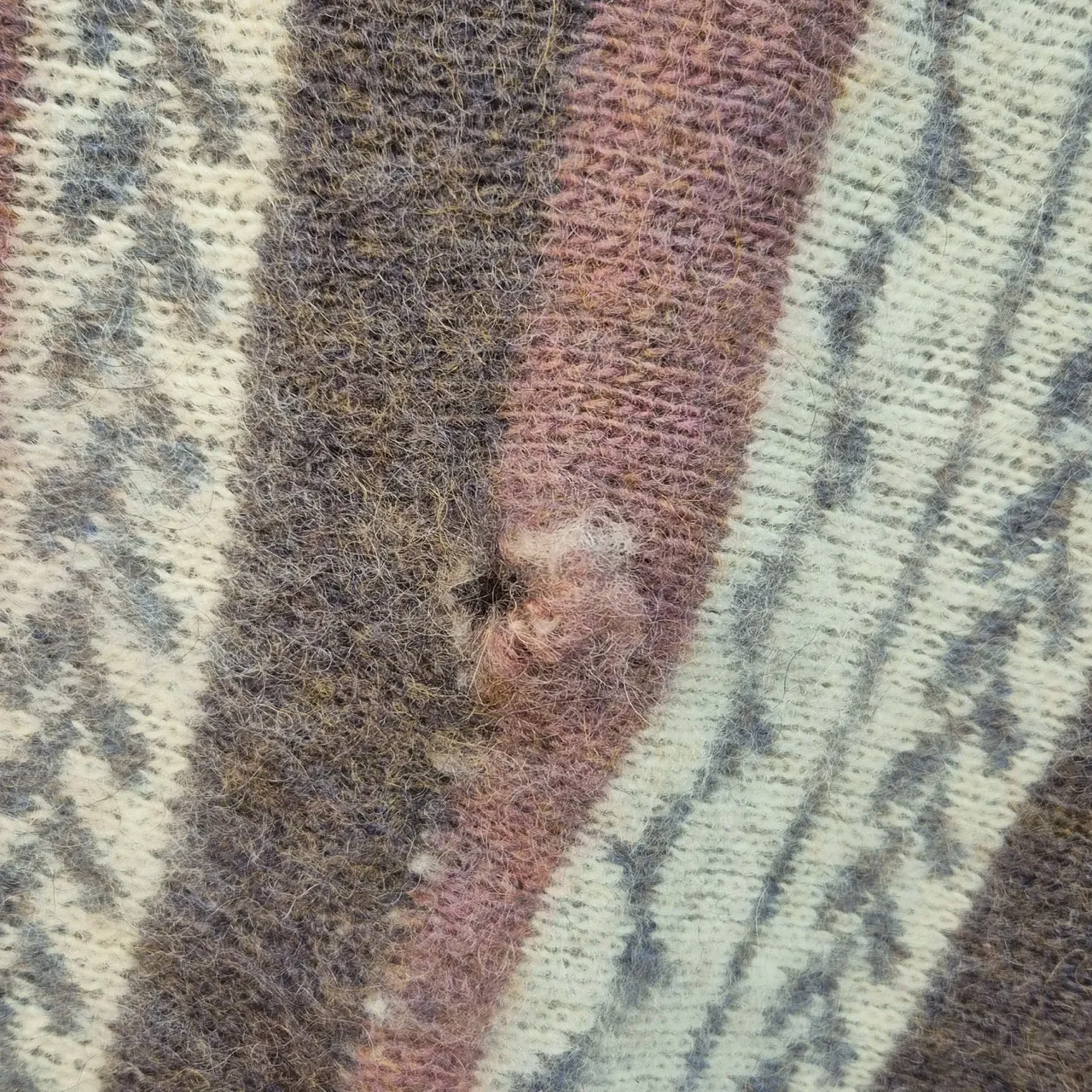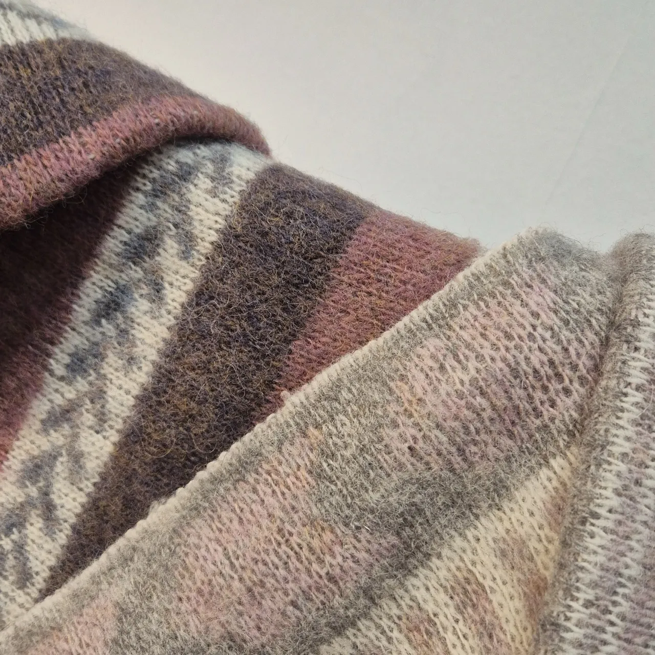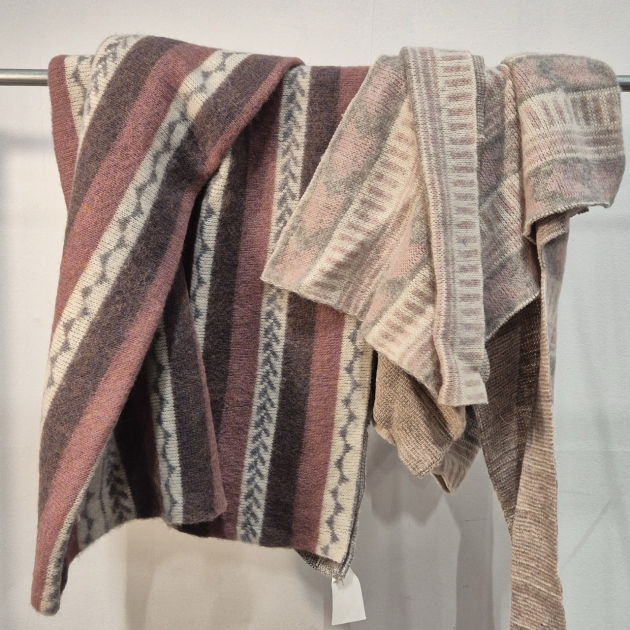 Stickat ull tyg. Den mörkare är en större bit och hopsytt 200x120cm