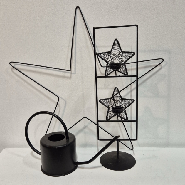Vattenkanna i metall , stjärna H.58cm , ljusstake för värmeljus med stjärnor
