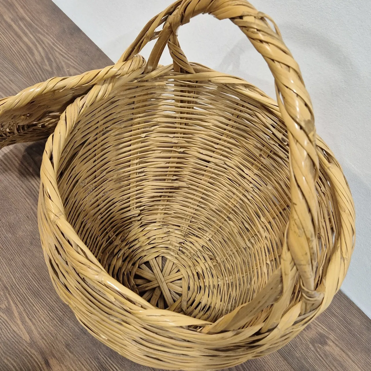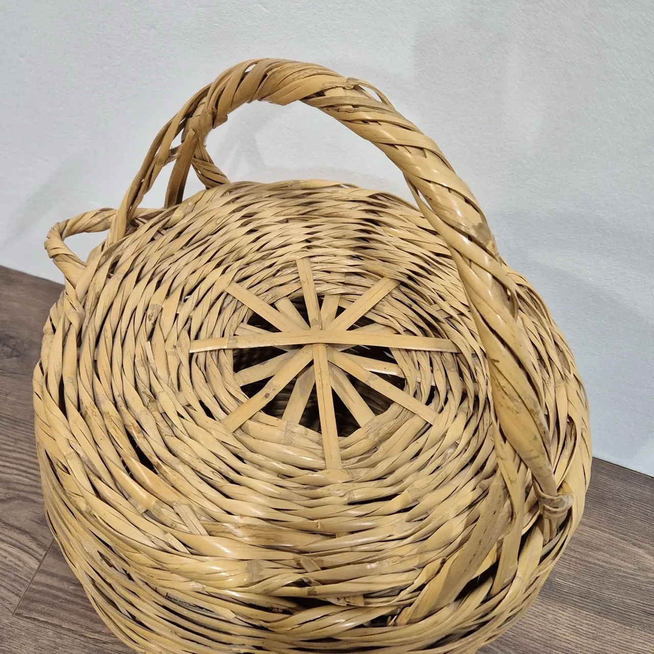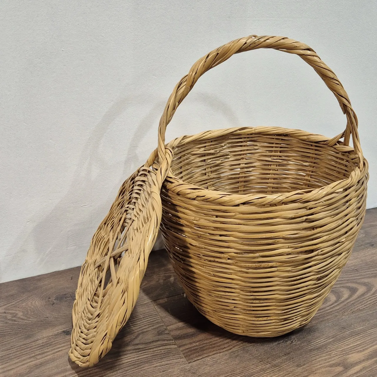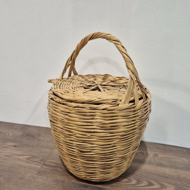 Stor korg med lock . Handtaget är skadat. H.57cm. D.42cm