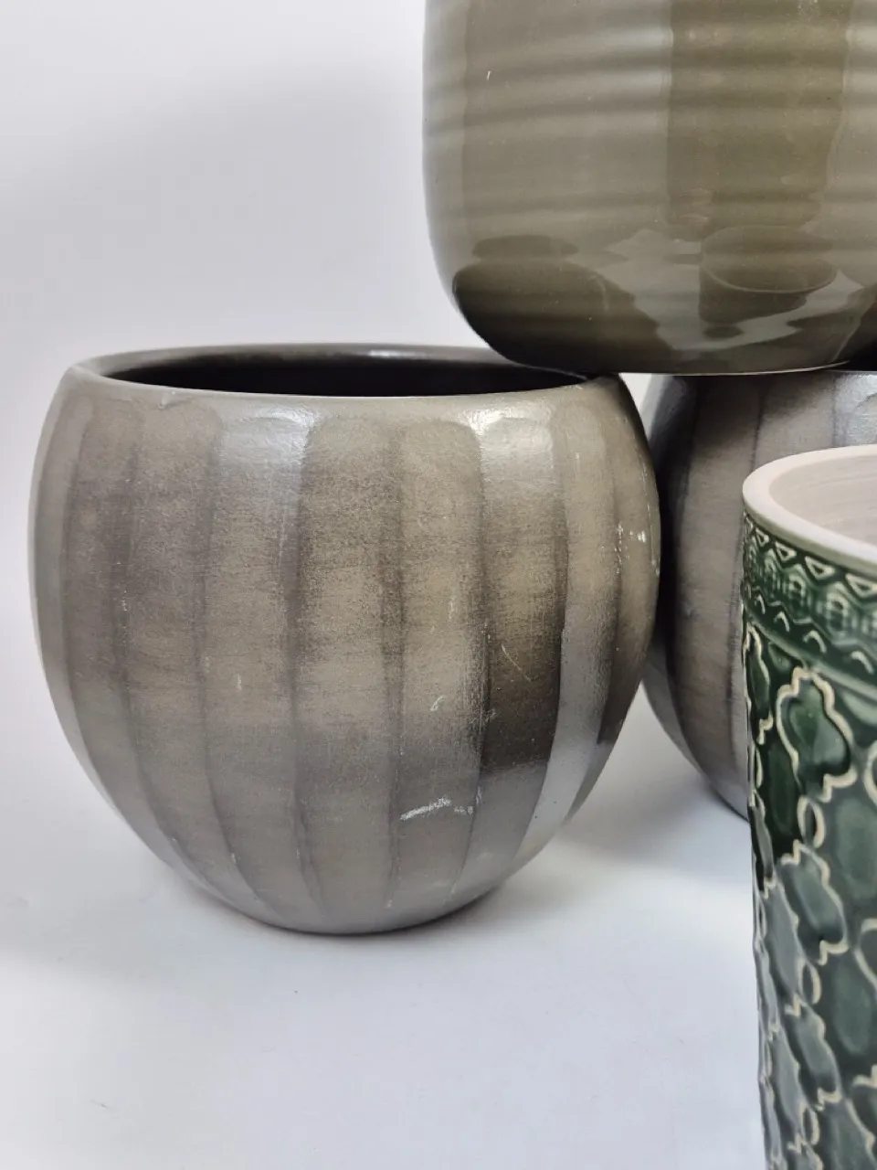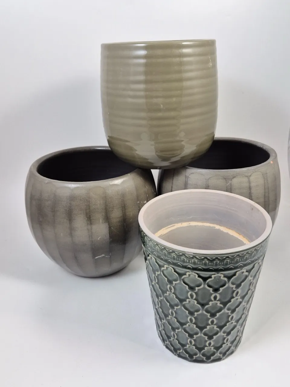 4st stora krukor. Det finns skrapmärken på de allra största och en har nagg , resten fina .