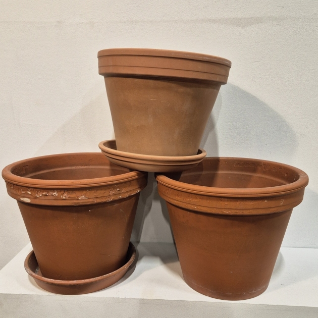 3st stora terracottakrukor 2st fat. Största H.26.5 D.34cm