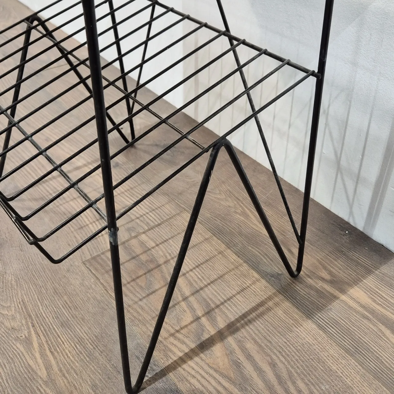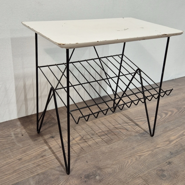 Stringbord med tidningshylla . Skrap och fläckar på ommålade skivan. H49cm 52x31cm