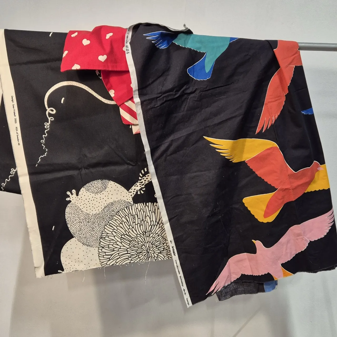 Tyg Sven Fristedt IKEA 70x250cm , tyg med fåglar, 2 andra små bitar