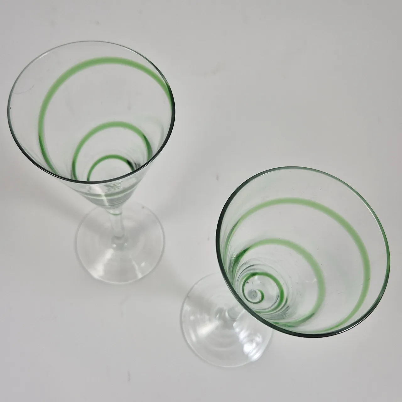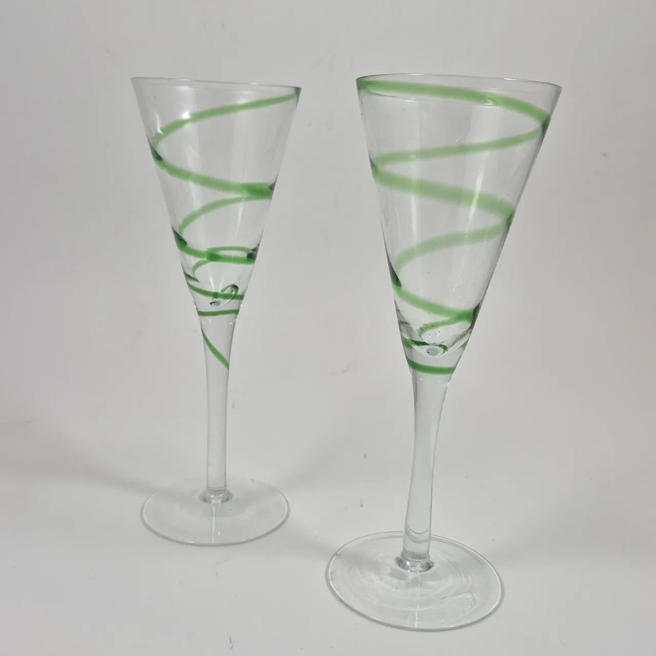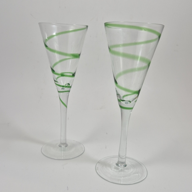 2st champagneglas med grönt swirl H. 22cm