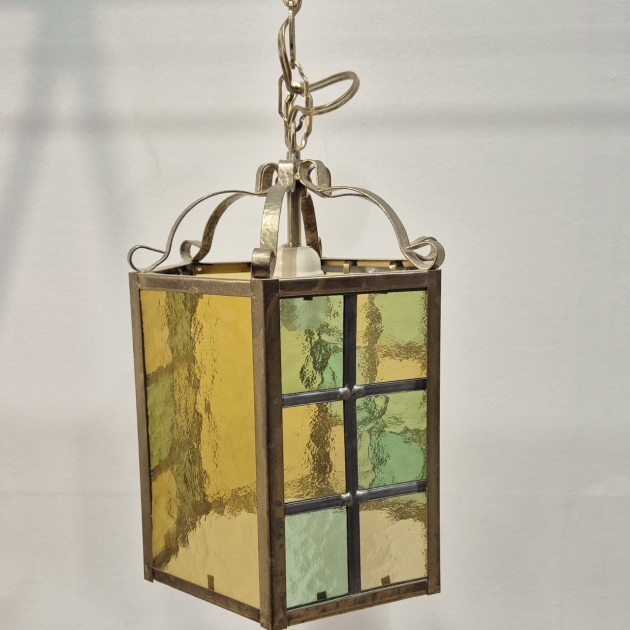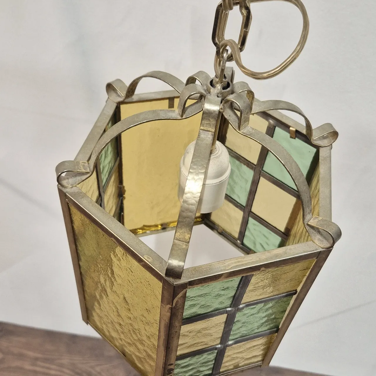 Taklampa med glasrutor, ej testad . H. ca 28cm