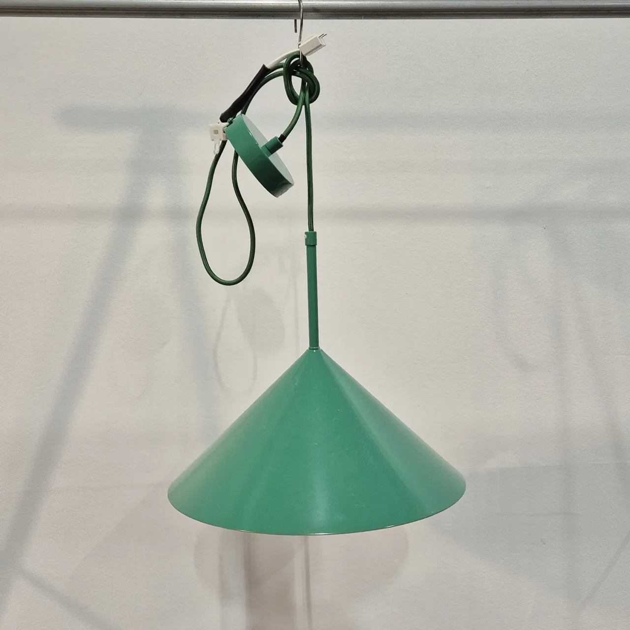 Taklampa ej testad. I plåt med textilsladd. D. 35cm