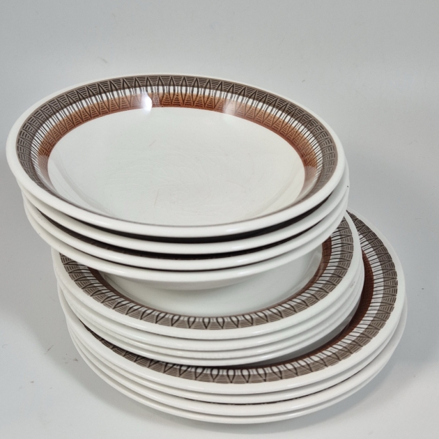 Gefle Lansett. Djupa tallrikar 4st, assietter 4st, förrättstallrikar 4st. Krackityr på djupa skålarna och 3 av tallrikarna