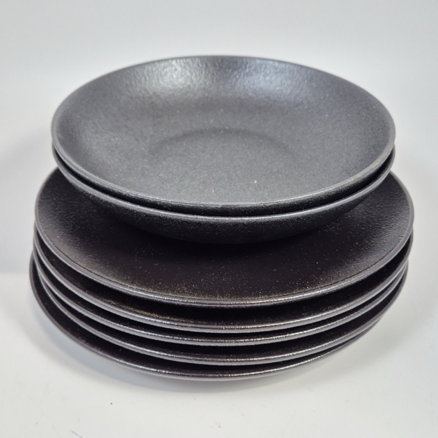 2st djupa tallrikar perfekta till pasta, 5st tallrikar. Grov keramik som ser ut som gjutjärn