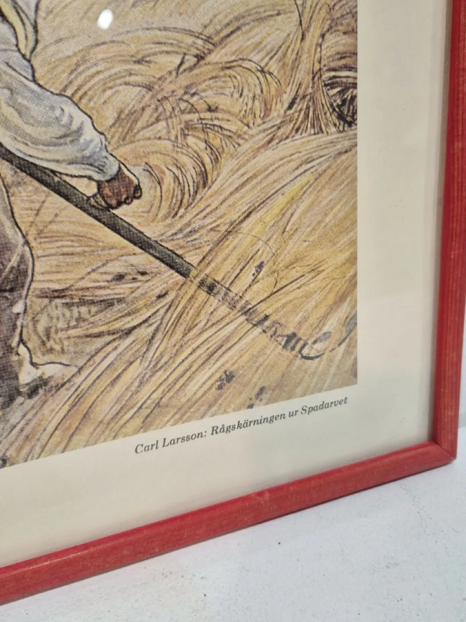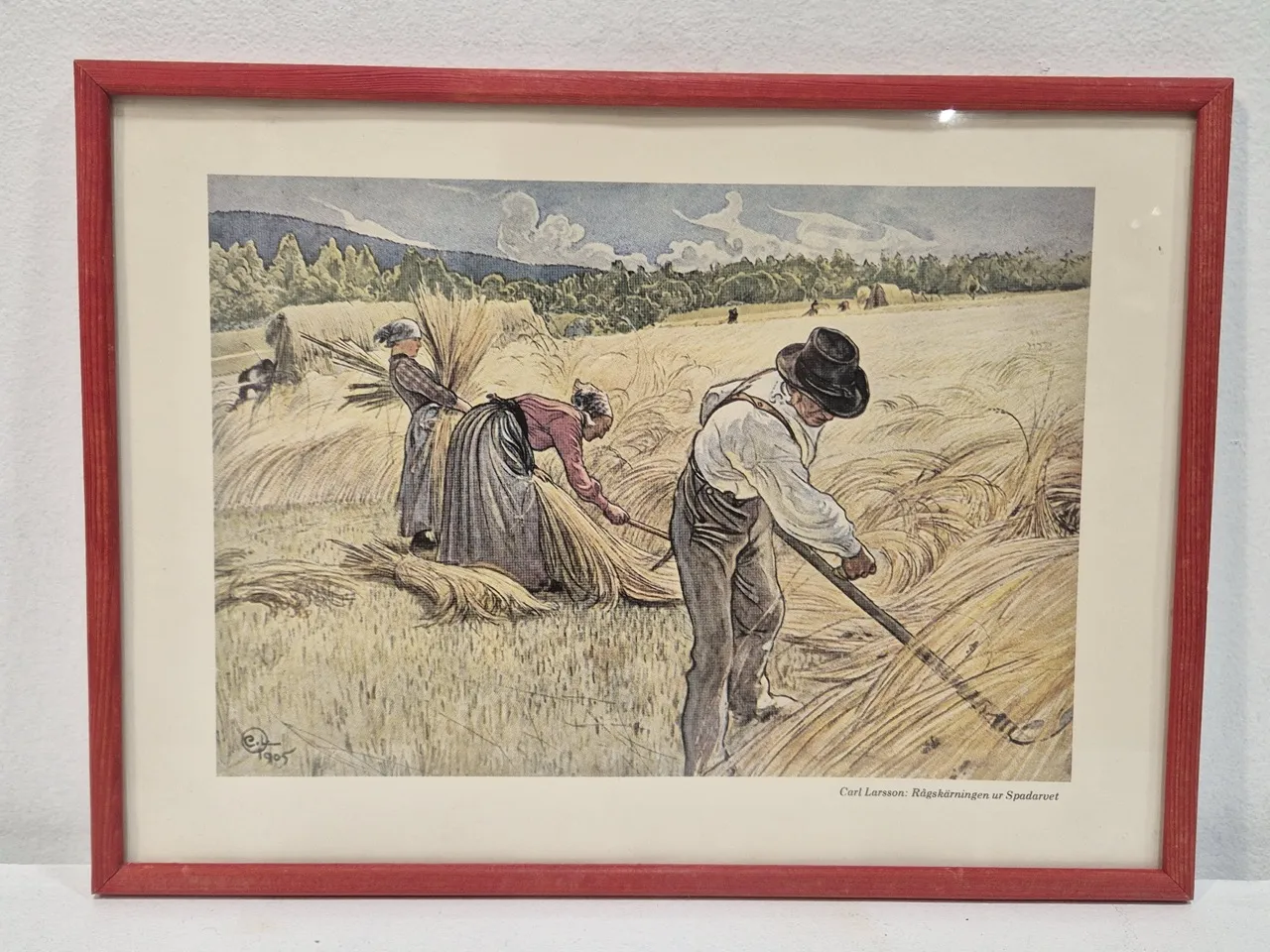 Tavla med Carl Larsson motiv, rågskärning. Inglasad. 34x25cm