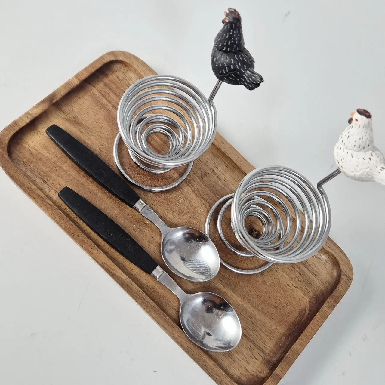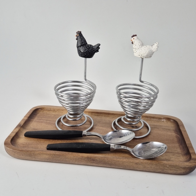 Teakbricka, 2st äggkoppar, 2st retro skedar