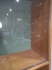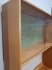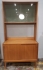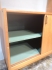 Skrapmärken finns, fuktfläckar. Knoppar på vitrin-luckorna saknas, hyllplan saknas